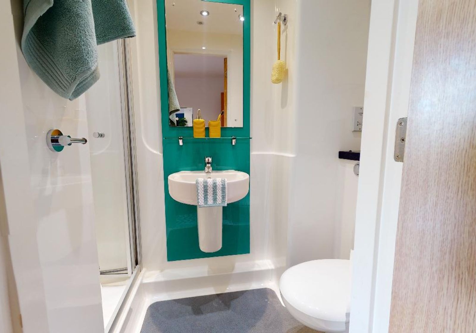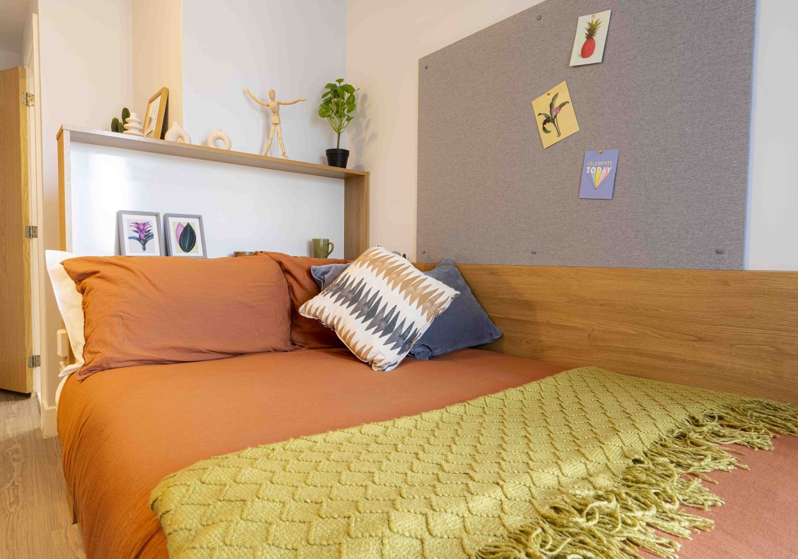 ABAC250-031125With a little more room than our Bronze En Suites, the Silver En Suite has a small double bed, storage and study area, and shares a kitchen and living area with up to four others.