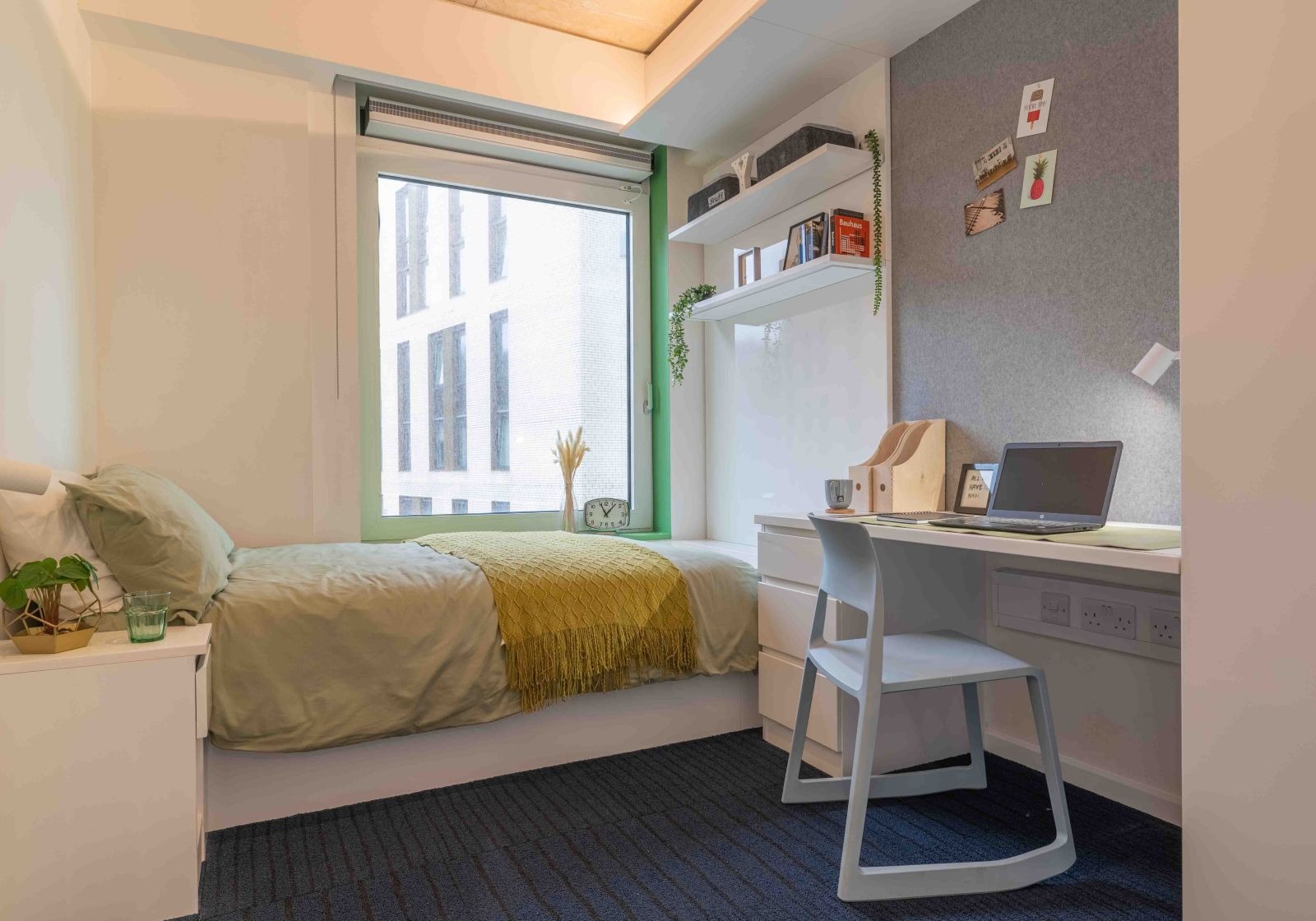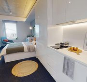 Combining space, style and great facilities, the Gold Studio Plus includes a bed, study desk and chair, an en suite shower room and a well-equipped kitchenette. This studio offers lots of storage space including a wardrobe, and enjoys the use of our onsite gym, social and study areas.