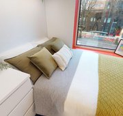 BRIG250-031125Private studio, Floors 7-12, 21.9 sq m, King size bed (150 x 200 cm) This large studio comes with a king-size bed and has all you need for an independent student life. Located on floors 7-12.