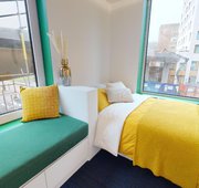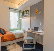 BRIG250-031125With more living space than the Silver En Suite Plus, this well-equipped room shares a kitchen with up to 2 flatmates. Located on floors 9-14 of the building. Efficiently designed, our Gold En Suite Plus gives you a bed, study desk and chair, and your own en suite shower room. You'll share a well-equipped kitchen with up to 7 others, and have the use of our onsite gym, social and study areas whenever you need them. Windows in some rooms are non-openable with a fresh air circulation system.