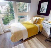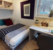 SAWM750-130825Our Accessible Studio is located on the 1st floor with 11-12 sq m of living space. The room comes with a double bed, private kitchen, wardrobe, study area, call points and an accessible en suite shower room.