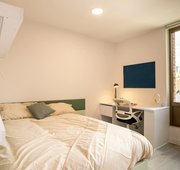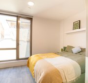 Room size is approximately 22.88m2 - Your own private studio - Private en-suite with shower and WC - Double bed with storage and bedside light - Wardrobe - Study desk, chair and storage - Bookshelf - Pin/Noticeboard - Mirror - Coat hooks -- Whats in the kitchen? - Your own private kitchen - Kitchen with preparation area, sink, combi oven and induction hobs - Storage cupboards - Fridge/freezer