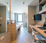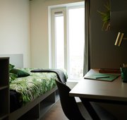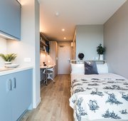 Our Platinum studios are our largest and best rooms in the building. This is luxury student living on another level! ,Kitchen Private, Bathroom Private, Utility Bills Included, Room Size 33m², Double bed, study area and plenty of storage, Private ensuite bathroom Private kitchen with combination microwave oven, 2 ring electric hob & small fridge freezer, 5m² larger than Gold Studio, Double occupancy FREE of charge.