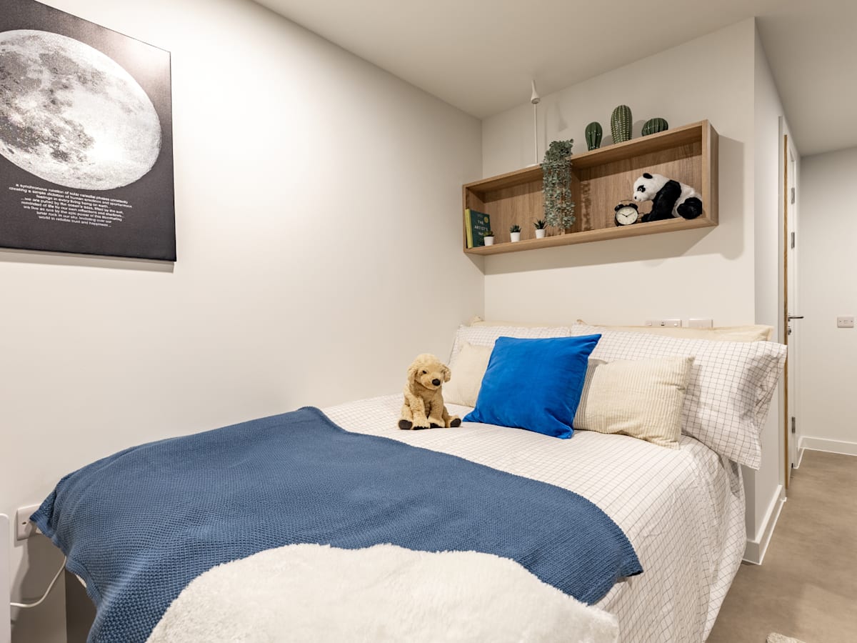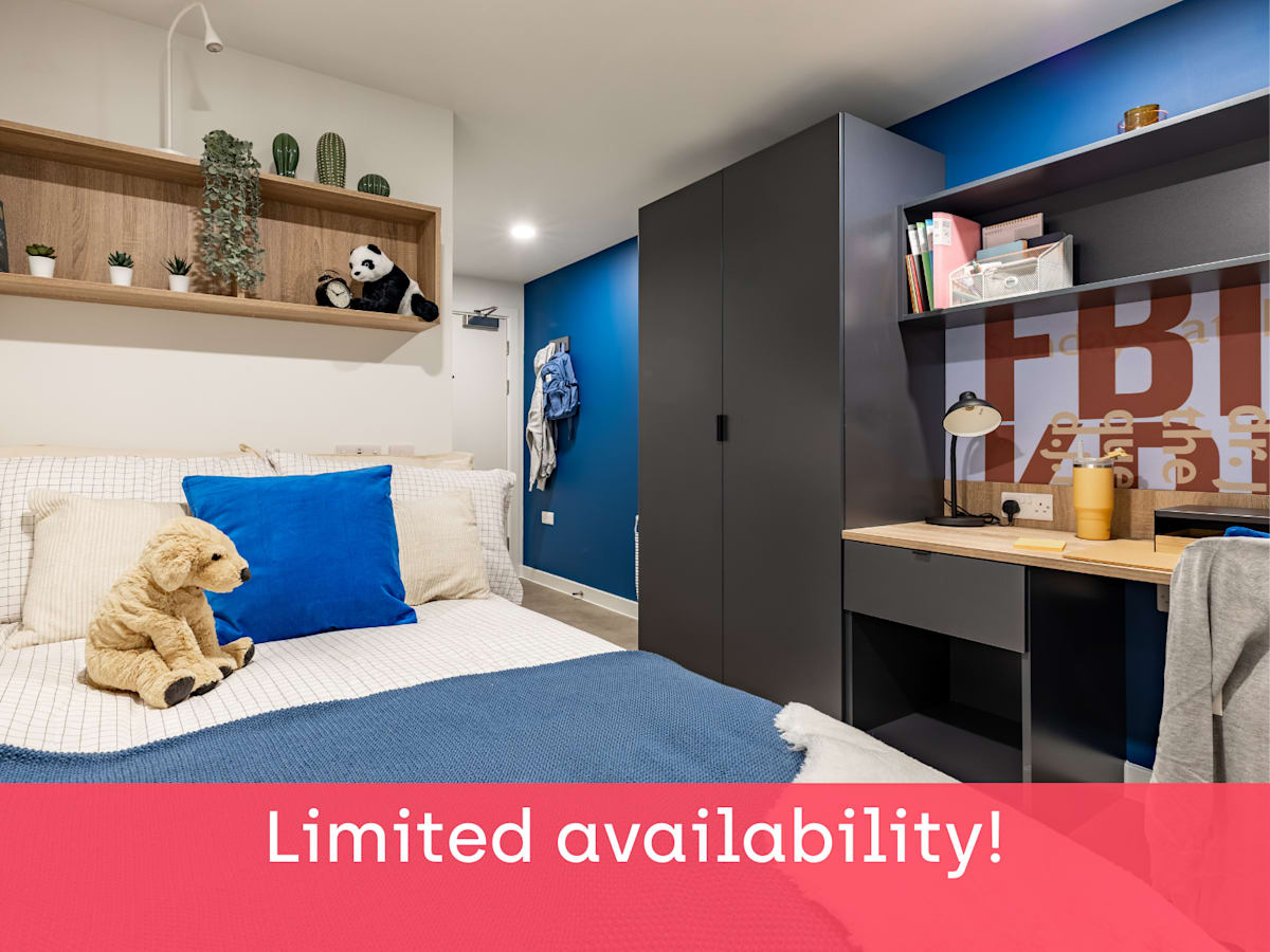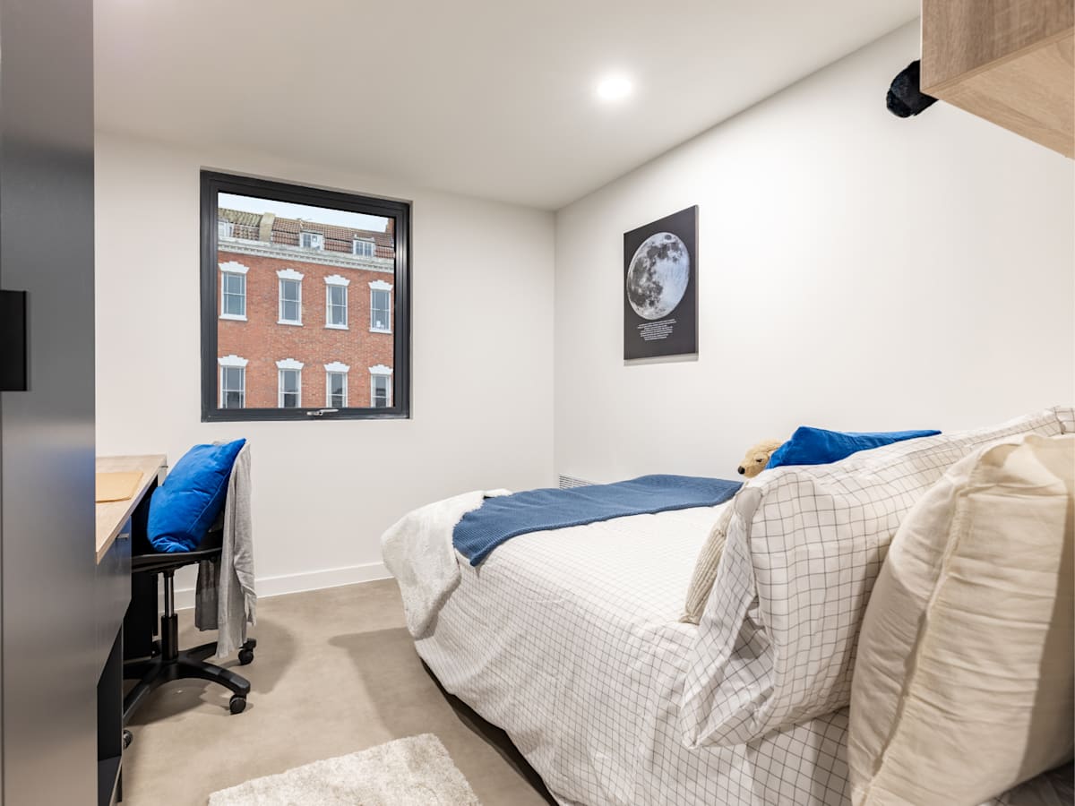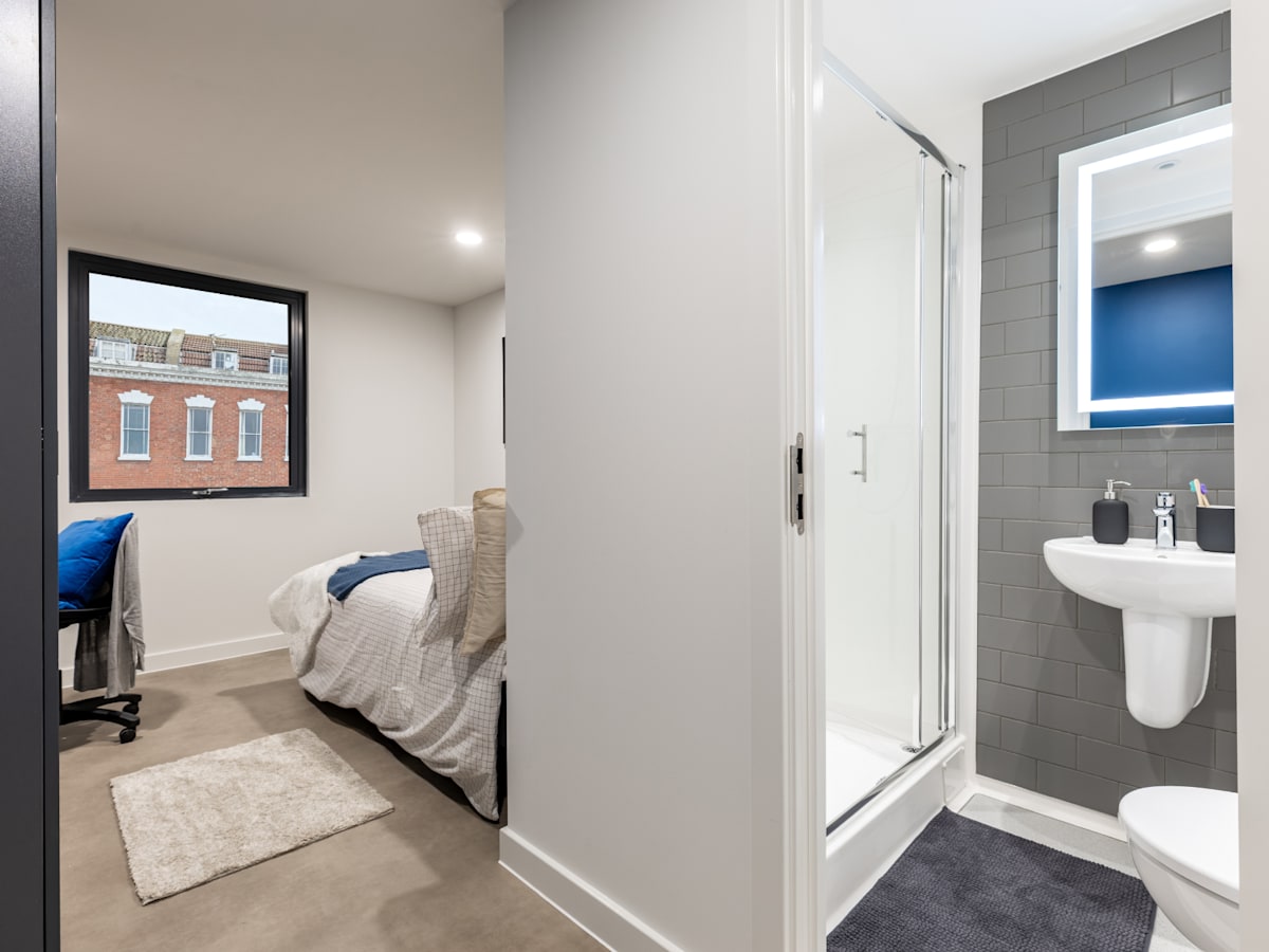 Each of our en-suite rooms comes with a small double bed, ample storage, a study workspace, and your own en-suite shower room. Plus, you can also relax in the shared kitchen, living room, or communal areas.