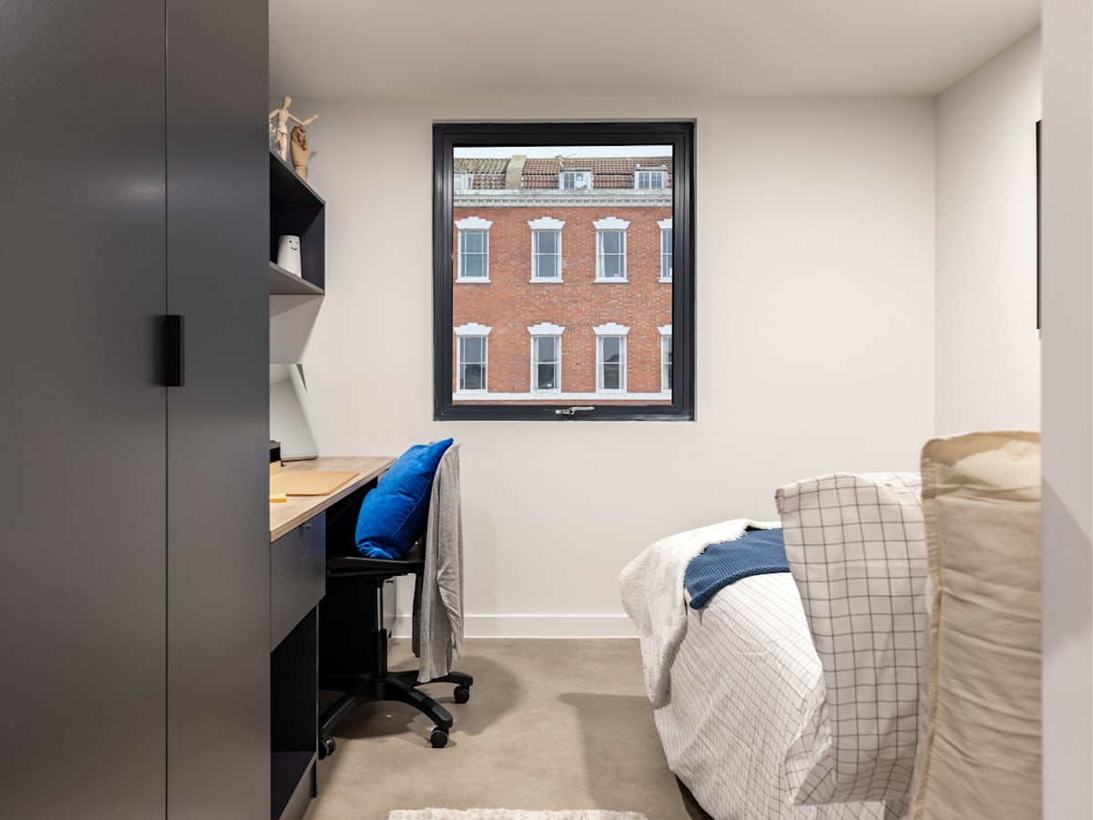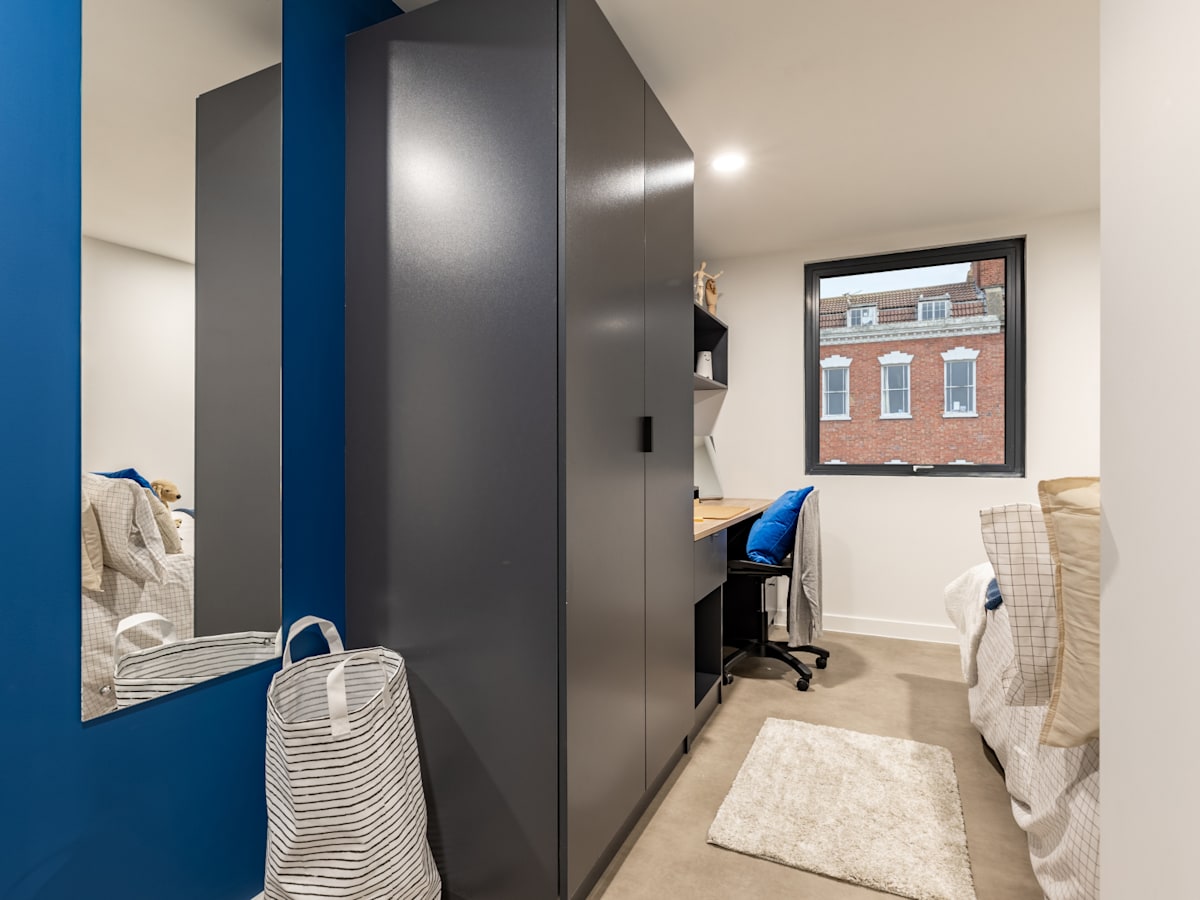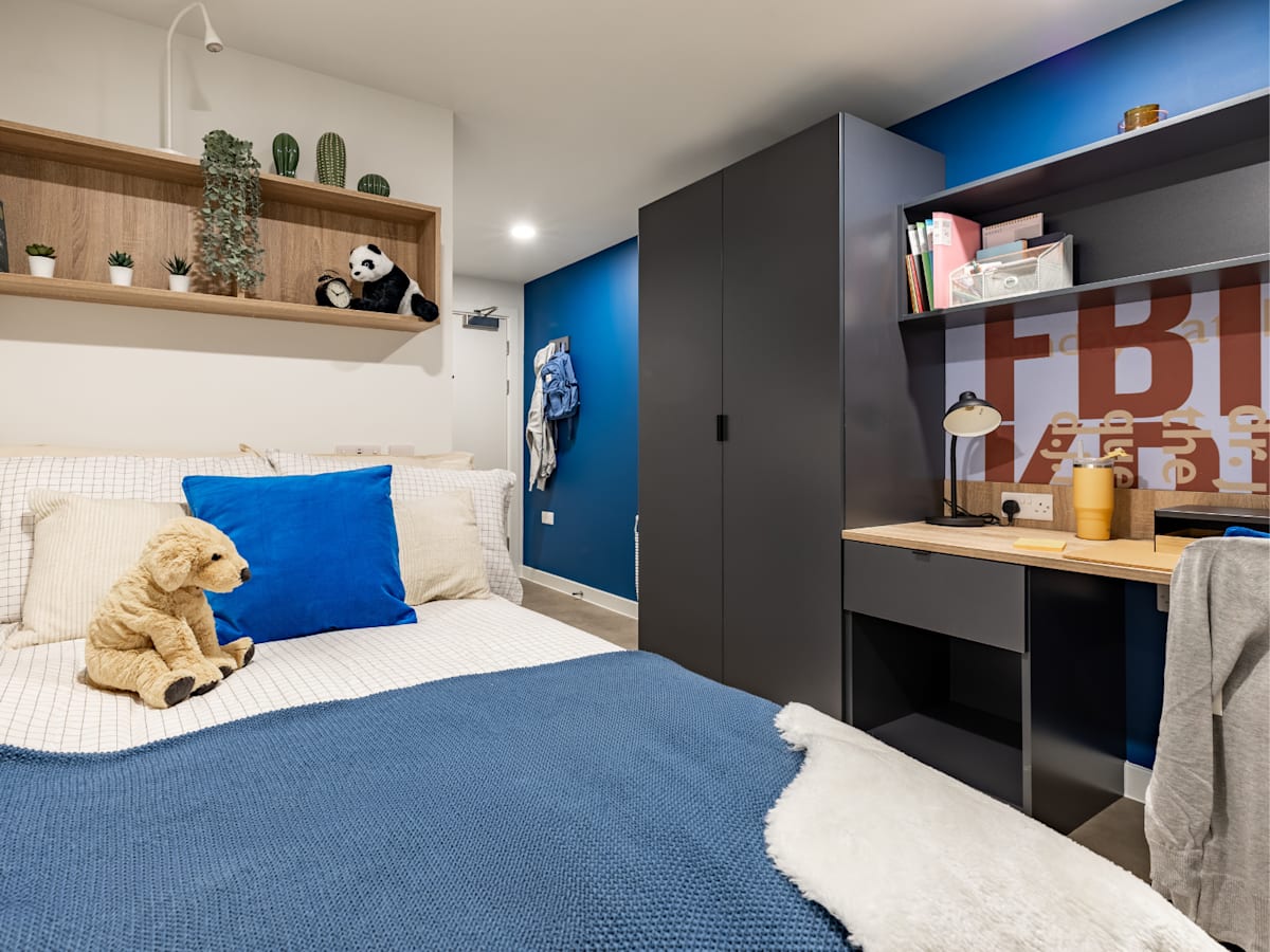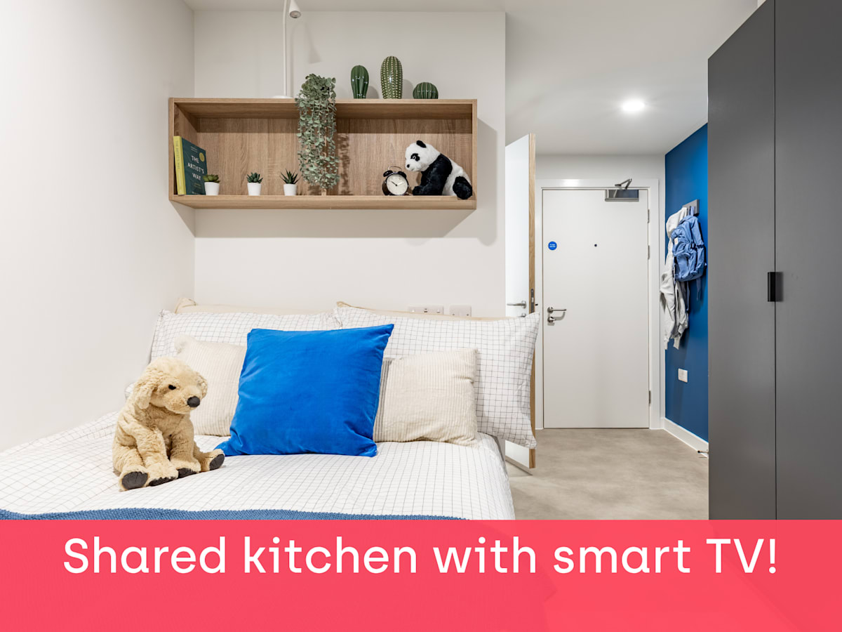 Book a studio room and kick back in a small double bed, with loads of study space, a dining area, and under-bed storage. Enjoy a self-contained kitchen and living space equipped with a TV. Room Type Features