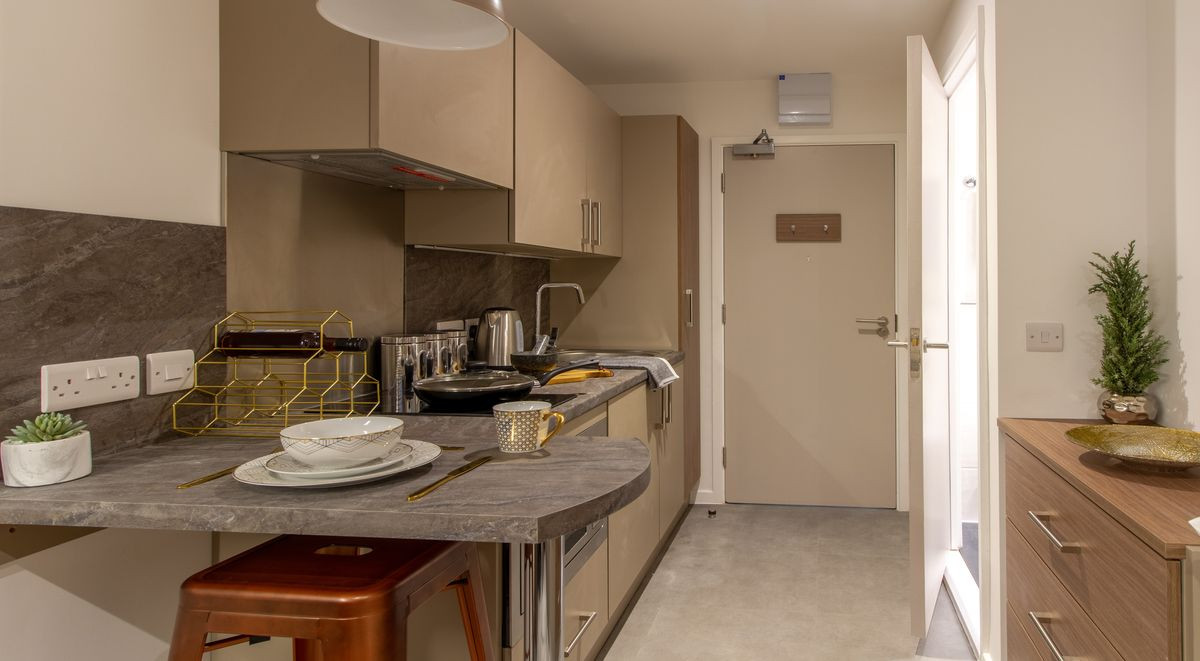 Situated on the ground floor, this studio room measure around 15-16m² and comes with a 3/4 sized bed, study area, ensuite bathroom, fully fitted kitchenette and ample storage. Dean Street Works has a variety of premium communal areas, including an onsite gym, study area and outdoor courtyard.