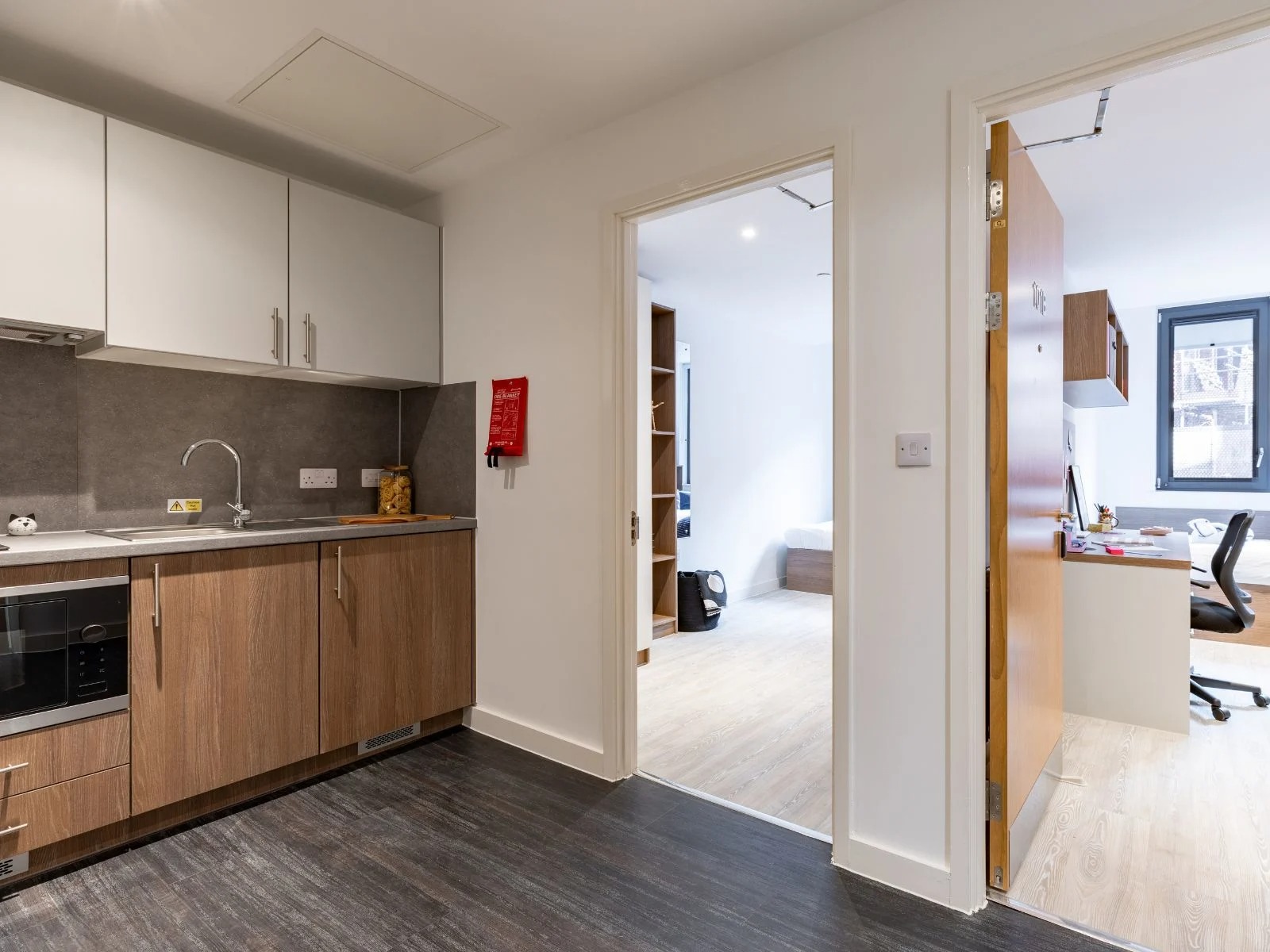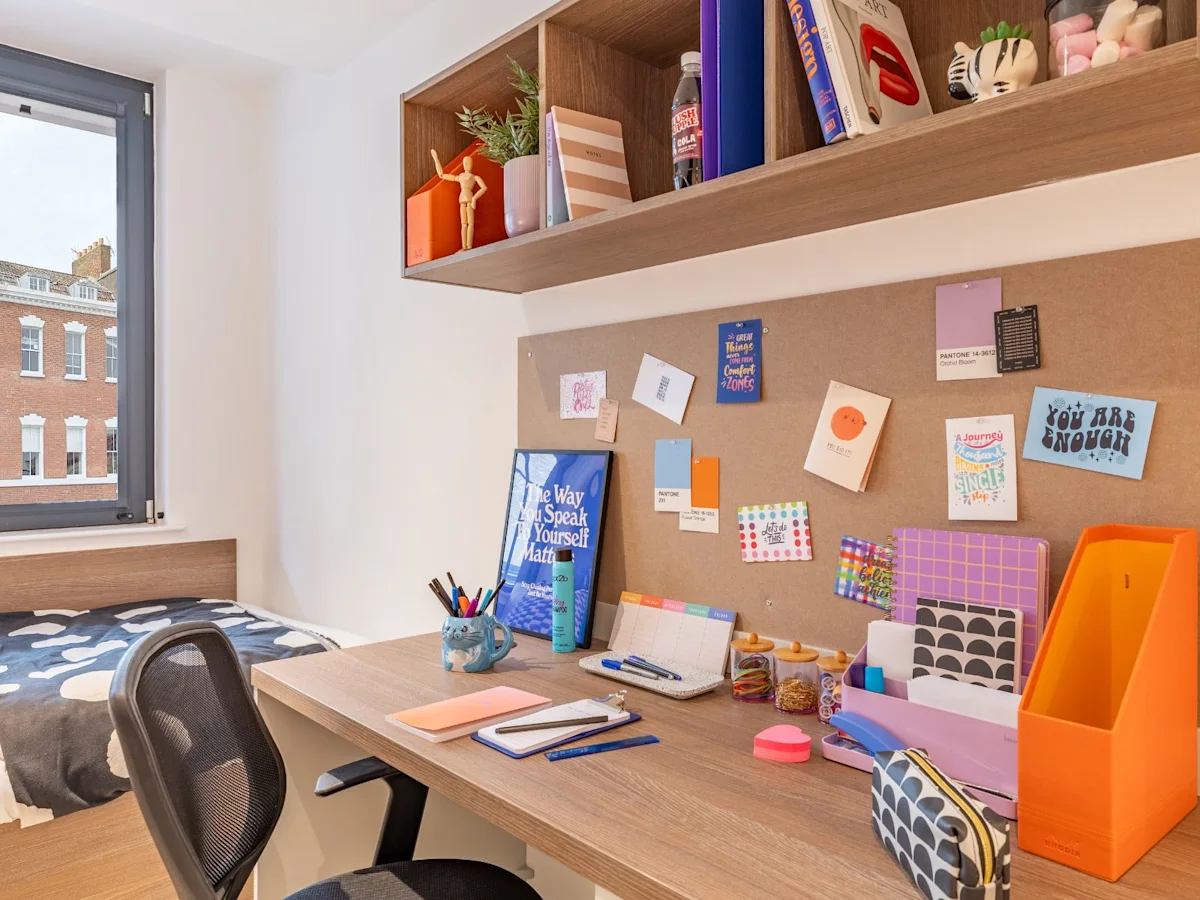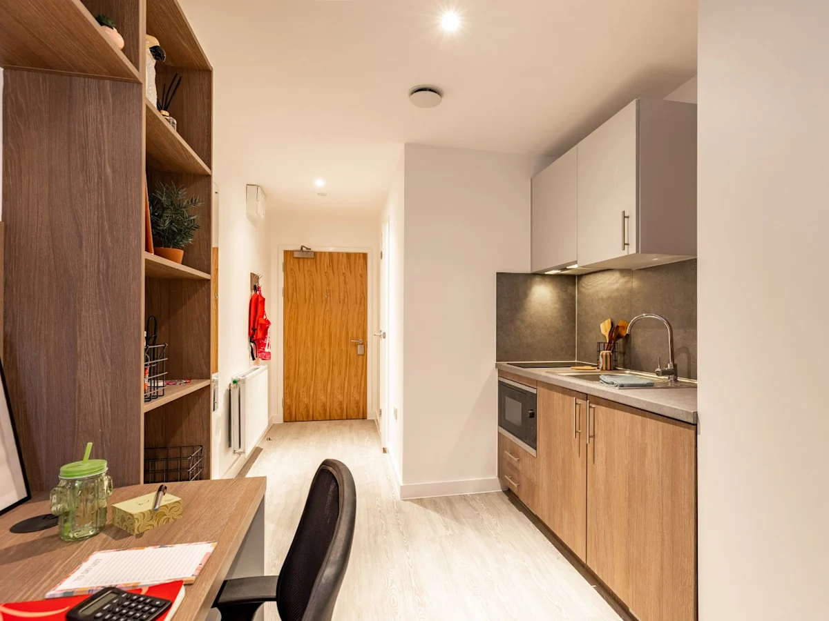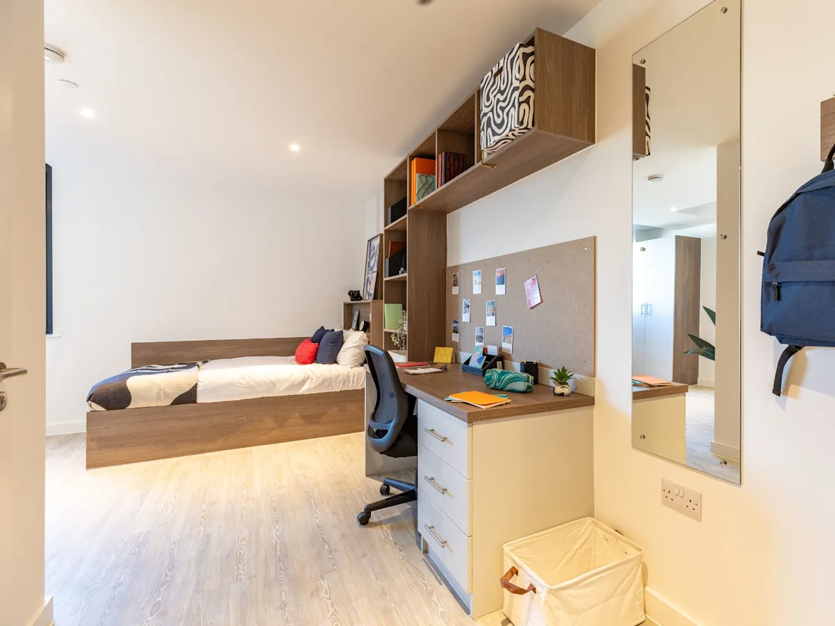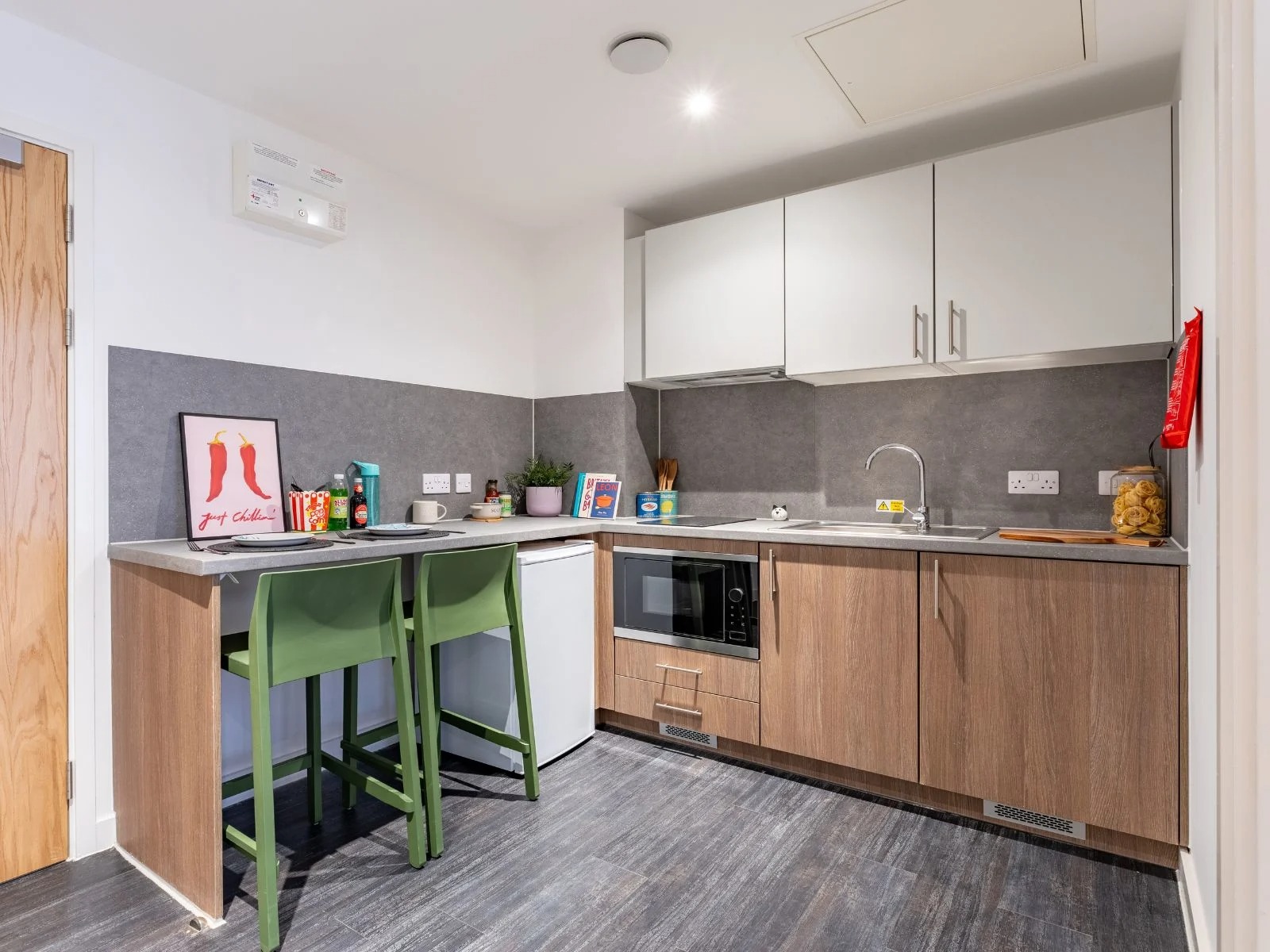 Glassworks accommodation offers fully furnished en-suite, twodio and studio apartments. All en-suite and studio rooms offer students an attached bathroom, a small double bed, a study area, and storage space. The studio rooms also features a private bathroom with a shower and a mini-kitchen with modern appliances. The twodios are cosy rooms with access to a kitchen.