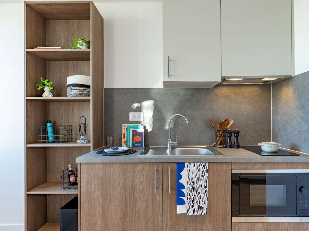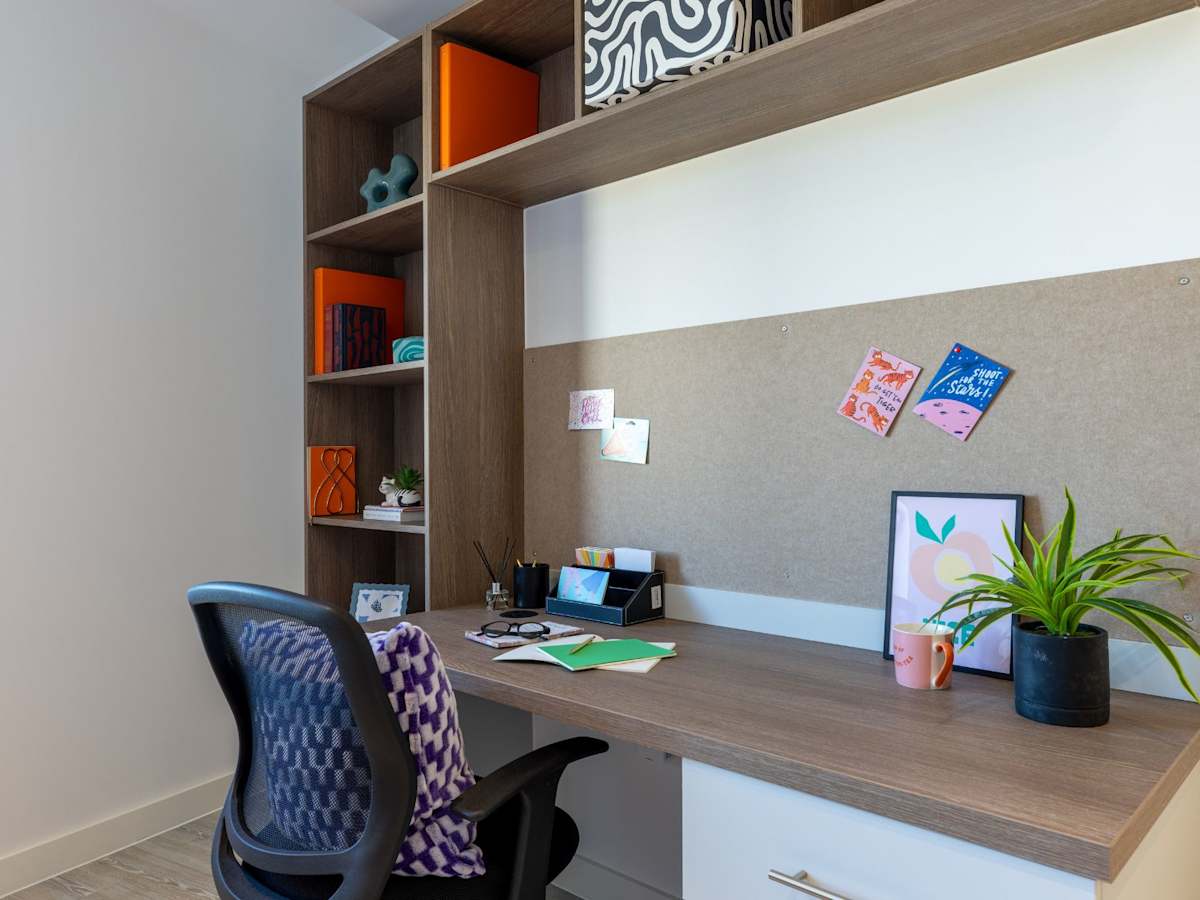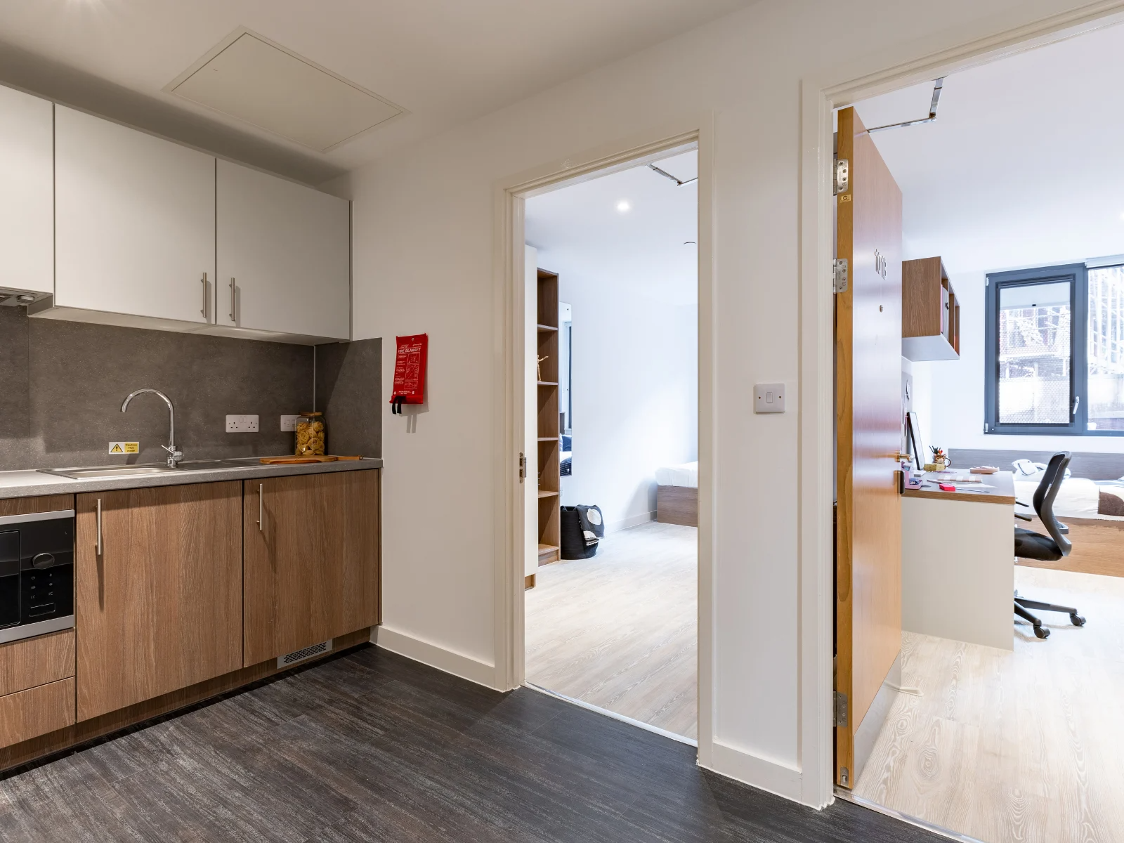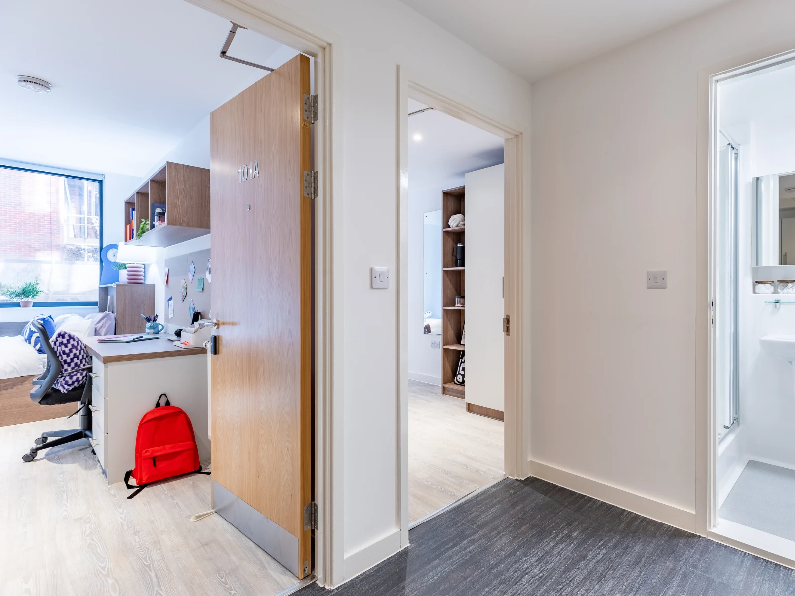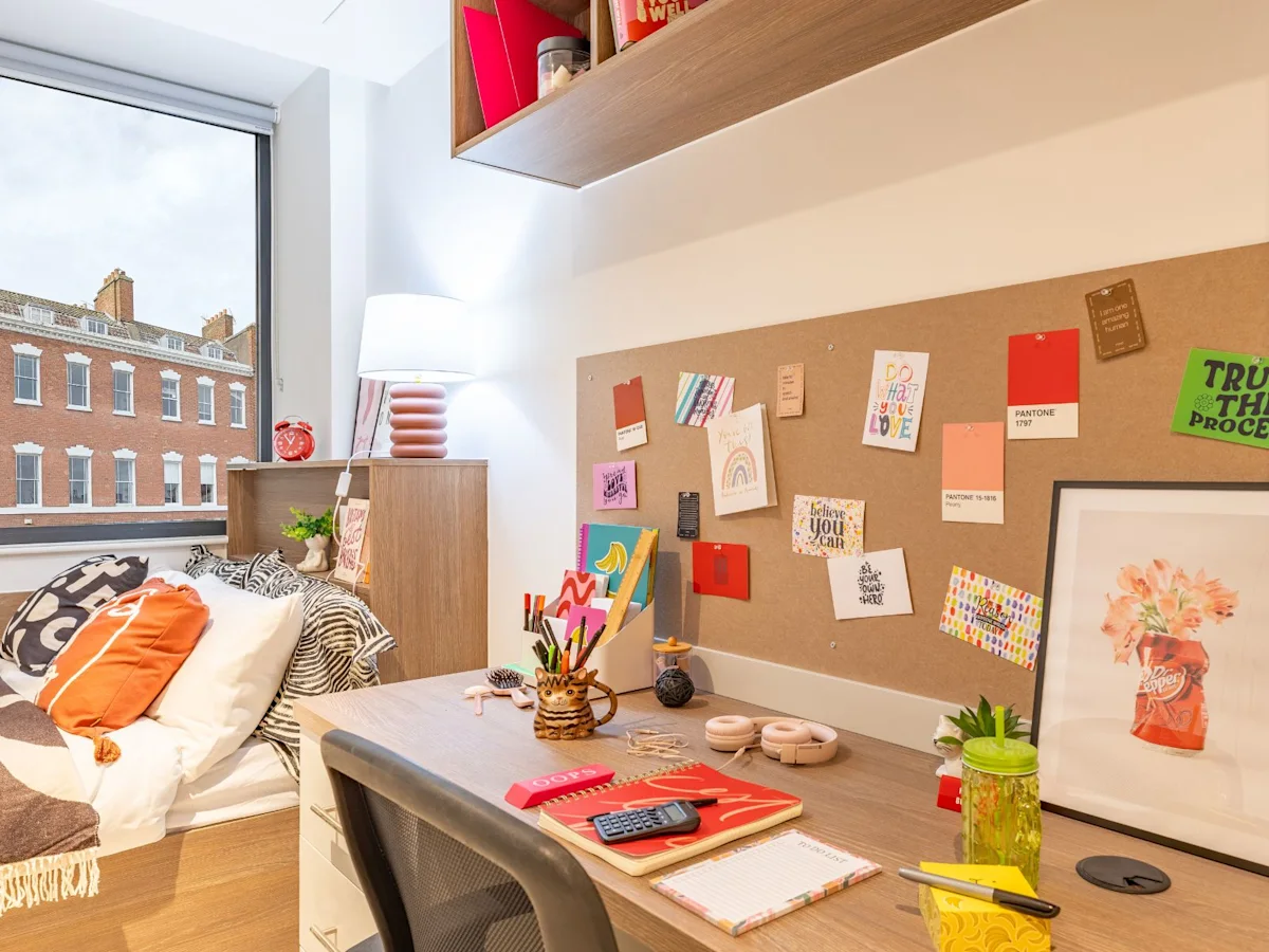 Glassworks accommodation offers fully furnished en-suite, twodio and studio apartments. All en-suite and studio rooms offer students an attached bathroom, a small double bed, a study area, and storage space. The studio rooms also features a private bathroom with a shower and a mini-kitchen with modern appliances. The twodios are cosy rooms with access to a kitchen.