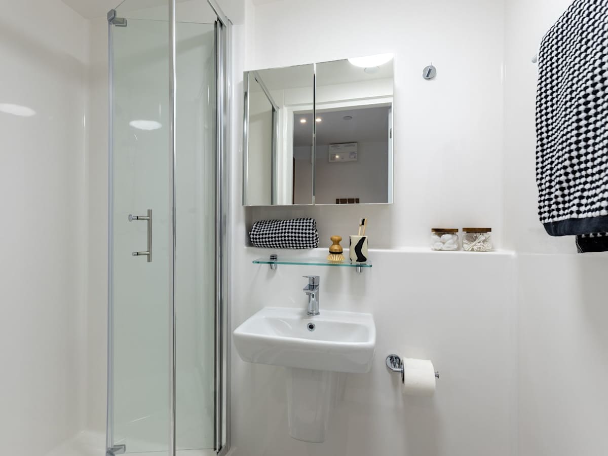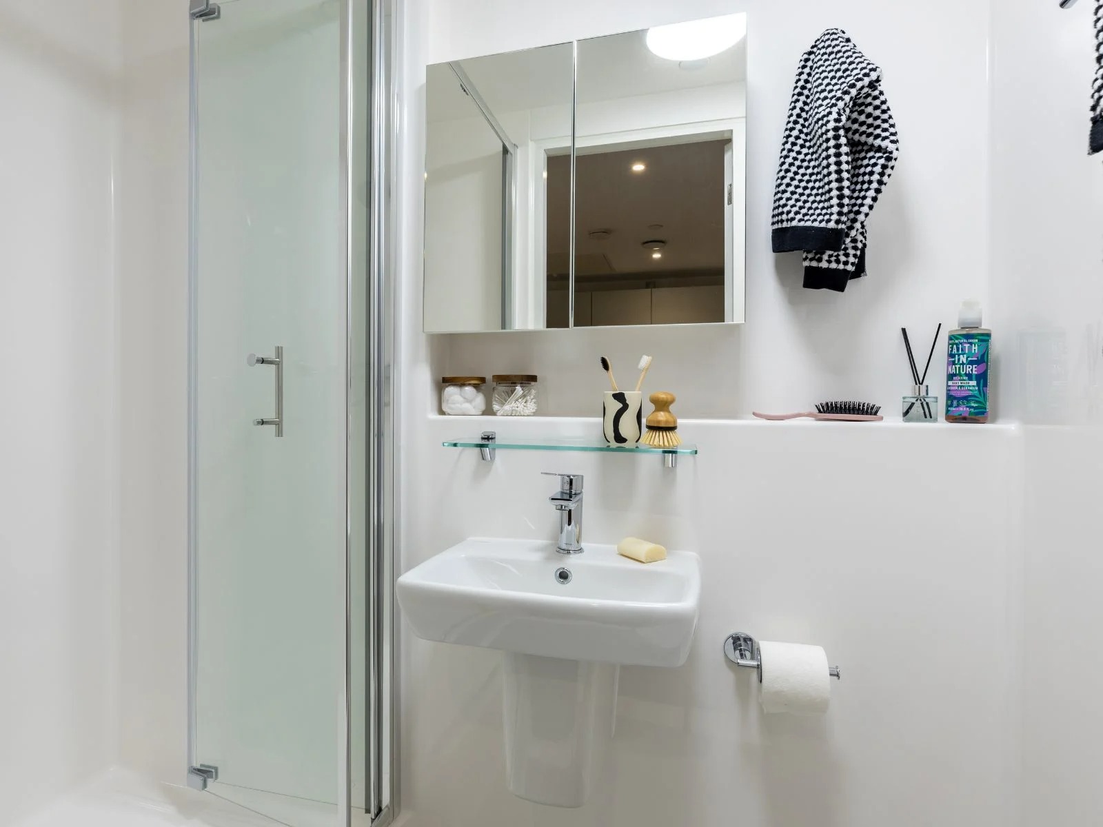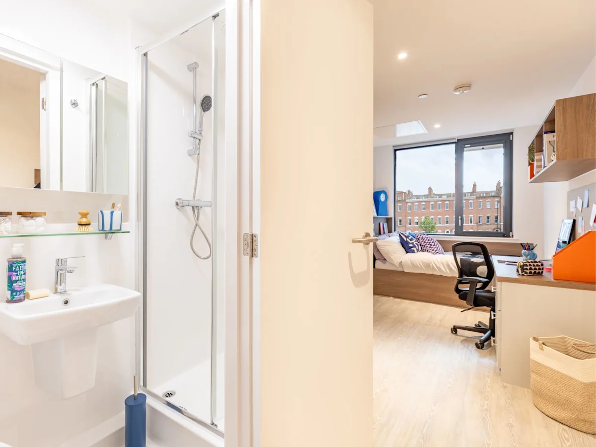 Located on the first floor overlooking our courtyard garden these amazing value Garden En Suites provide approx. 14sqm of living space. With your own en suite shower room, comfortable small double bed, study space and loads of storage. Plus, meet your flatmates in your spacious shared kitchen and lounge area, kitted out with a TV.