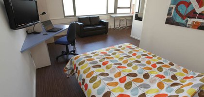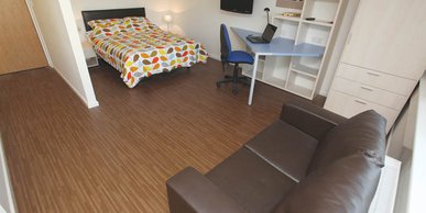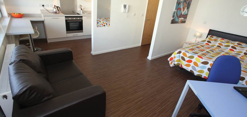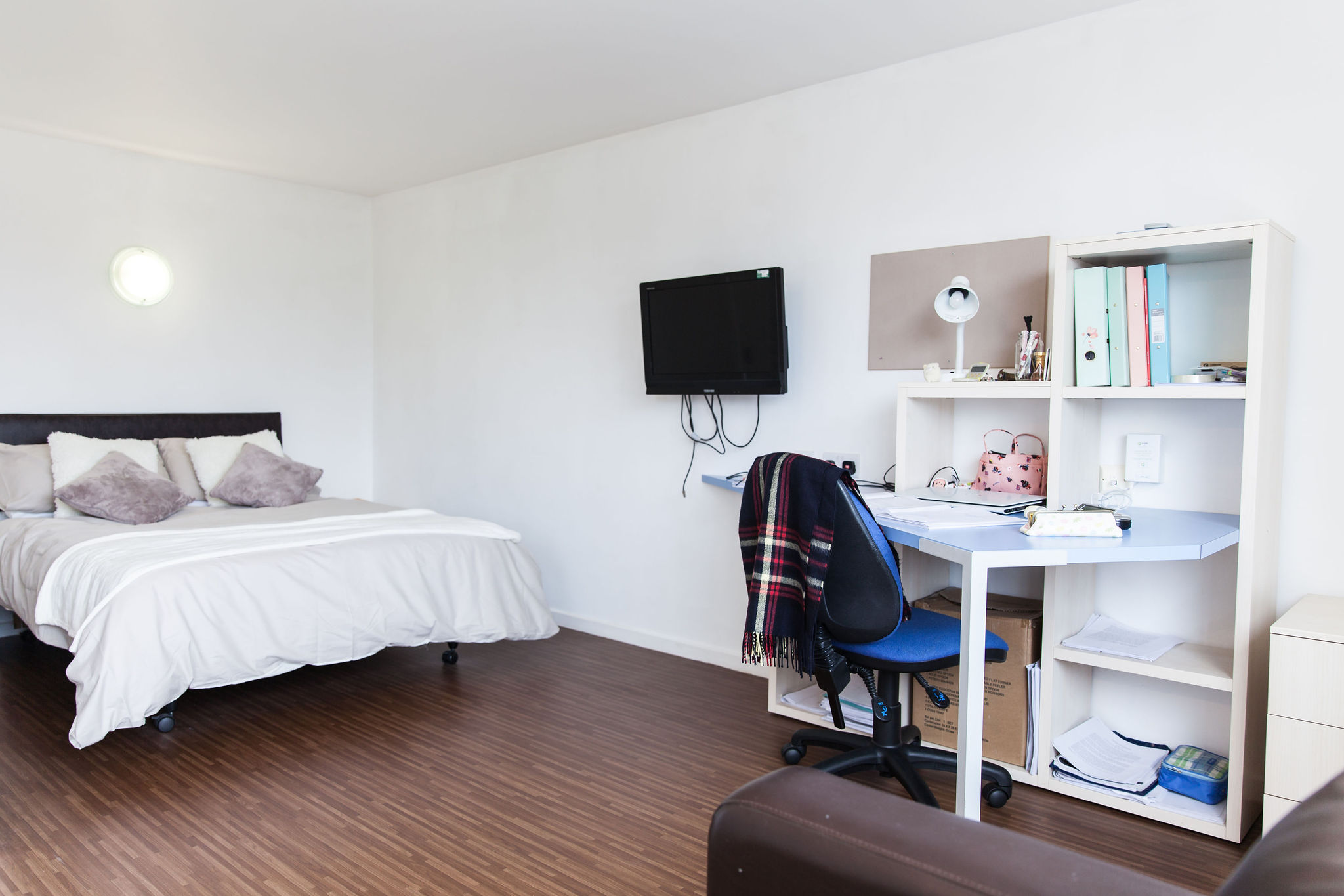 30m2 Double Bed En-suite with shower cubicle Washer/Dryer Large free standing wardrobe TV ( Licence not included) Study desk and chair Two seater sofa Kitchen area complete with electric oven and two ring hob Built in dishwasher Bedside drawers Heated towel rack Full mirror Intercom Suitable for dual occupancy.