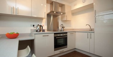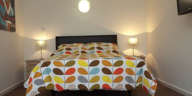 Located on the top floor of the building Double bed En-suite with shower cubicle Washer /dryer Heated towel rack Built in large double wardrobe with sliding doors Extra cupboard storage space Two bedside drawers Chest of three drawers Breakfast Bar with stools Kitchen area complete with electric oven with four ring hob Hood extractor fan Built in dishwasher Full mirror Study desk with chair and storage shelving Two seater sofa TV (licence not included) Intercom For dual occupancy bookings, there is a £30 surcharge per week.
