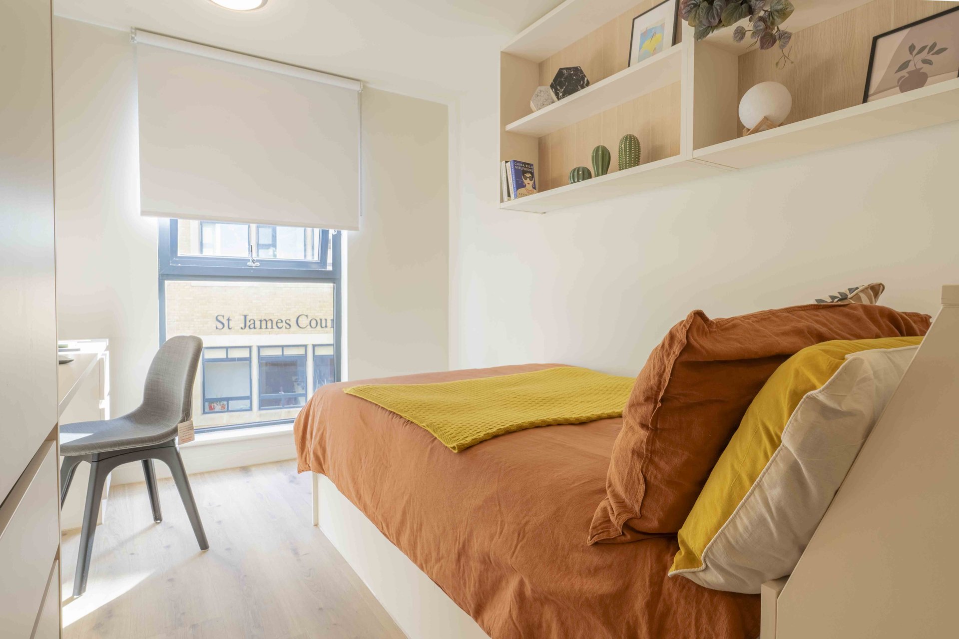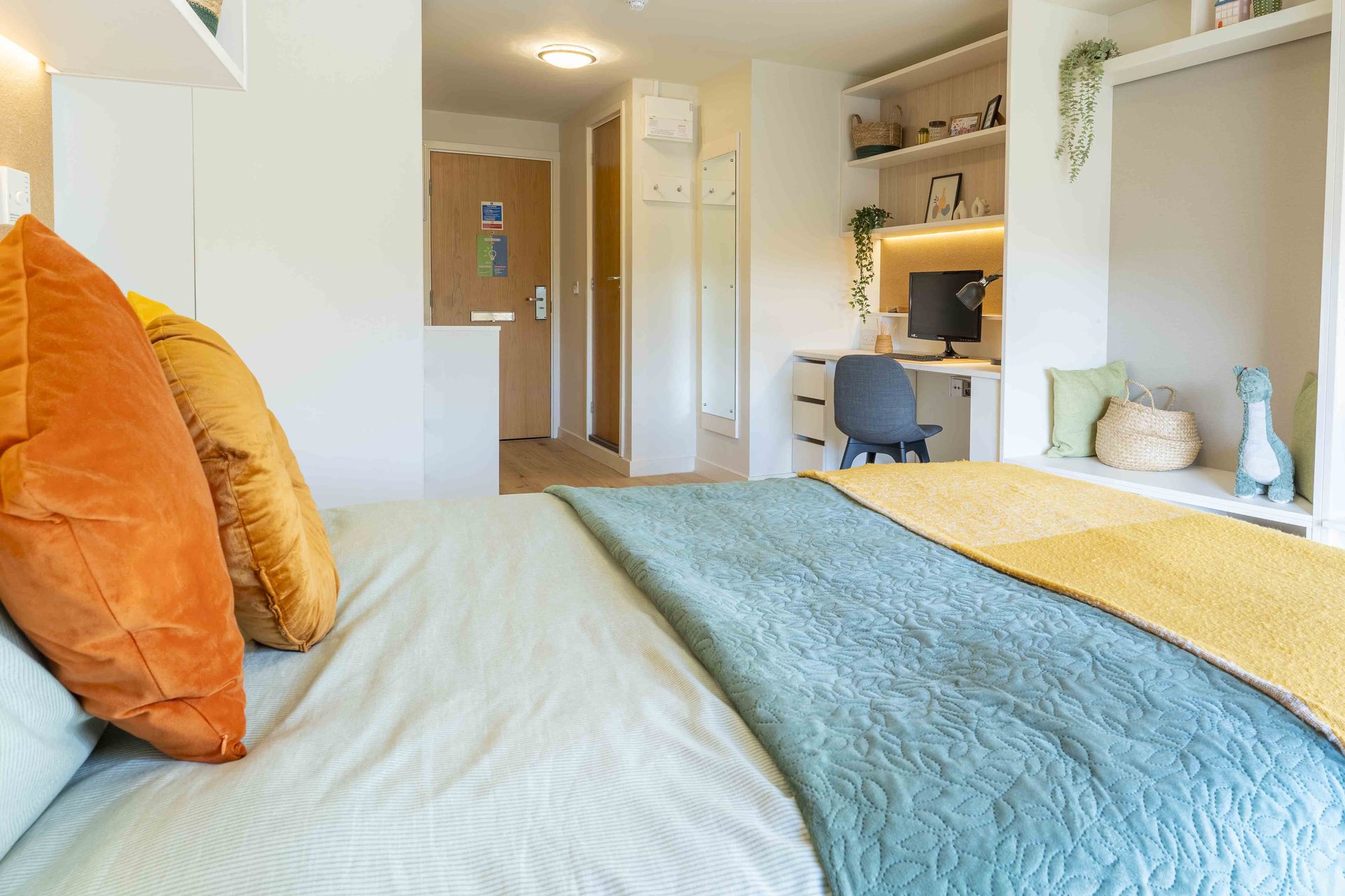 Our Bronze Studios plus give you your own kitchen, bathroom, study space and small double bed. With plenty of social spaces, a games room, gym and music practice room in the building, there’s plenty of great communal areas too.