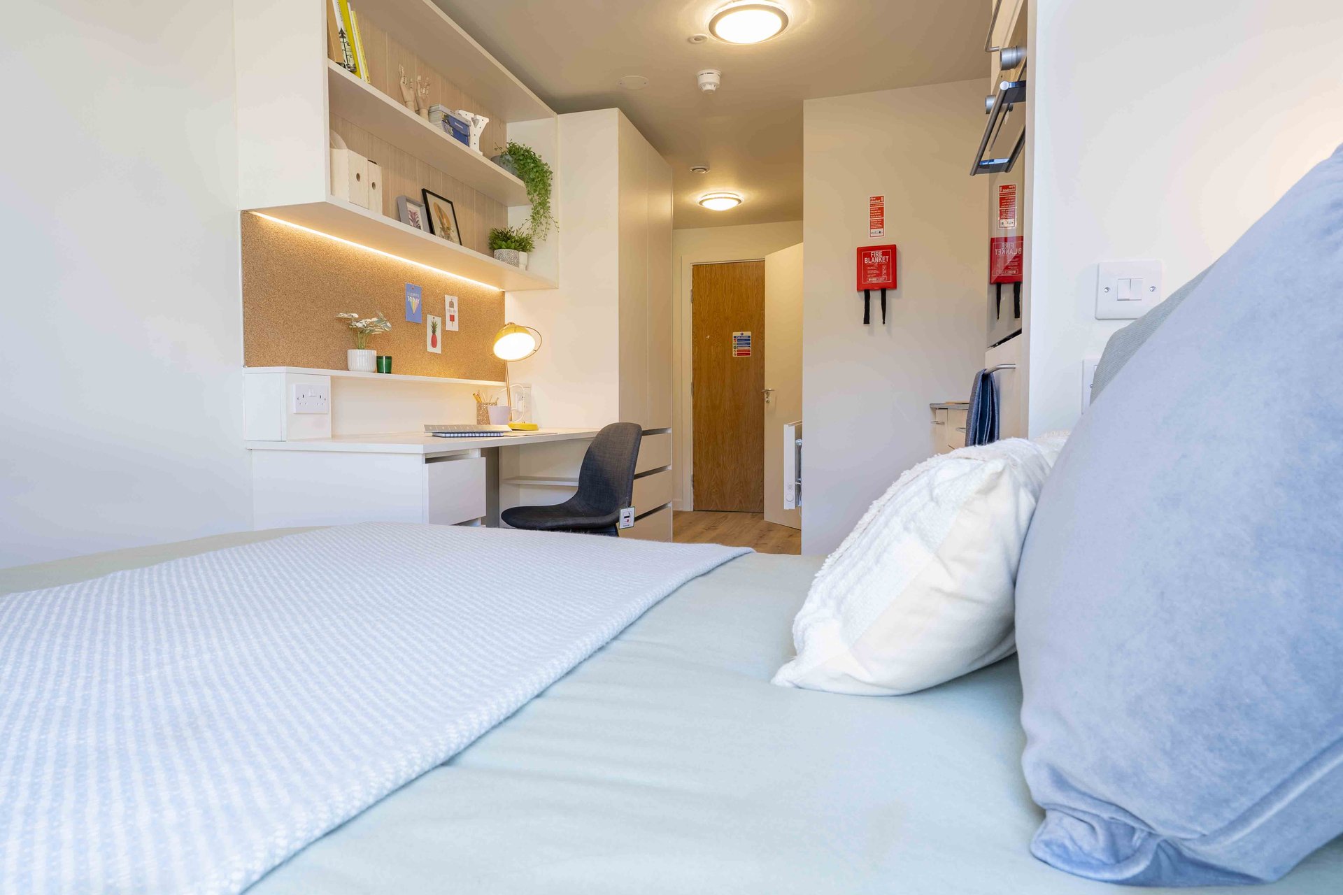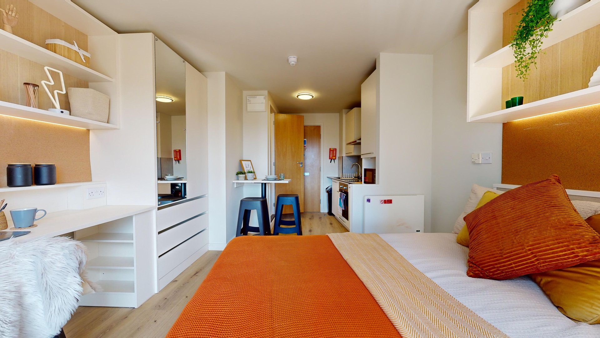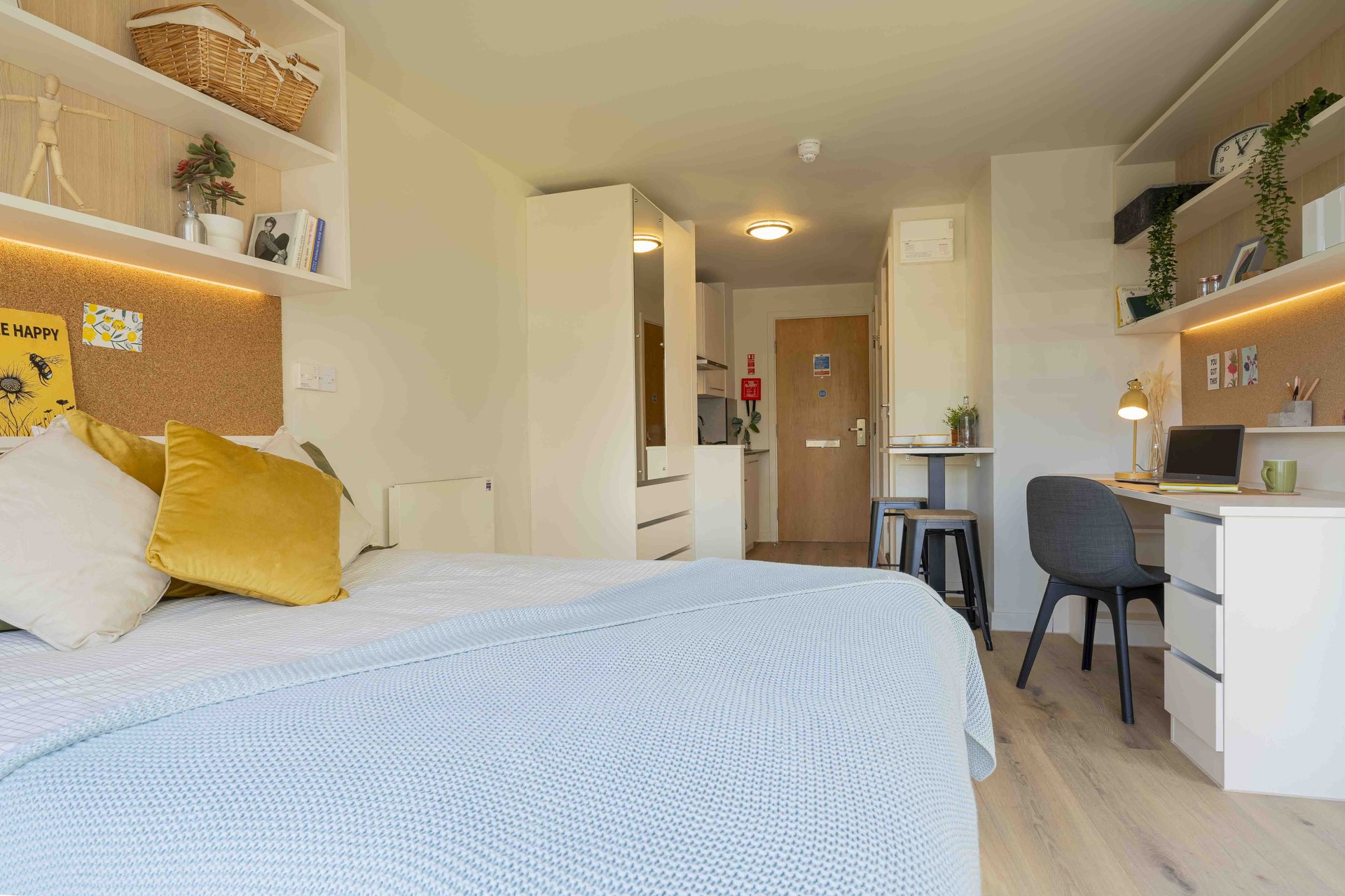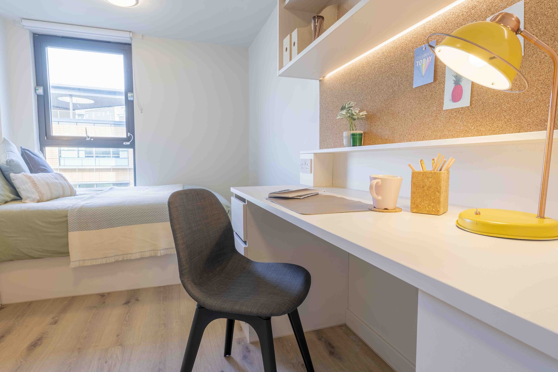 This room has had a makeover. Expect extra lighting, more storage, a new mattress, and additional corkboards to personalise your space. Plus, you'll get new appliances to spice up your kitchen.