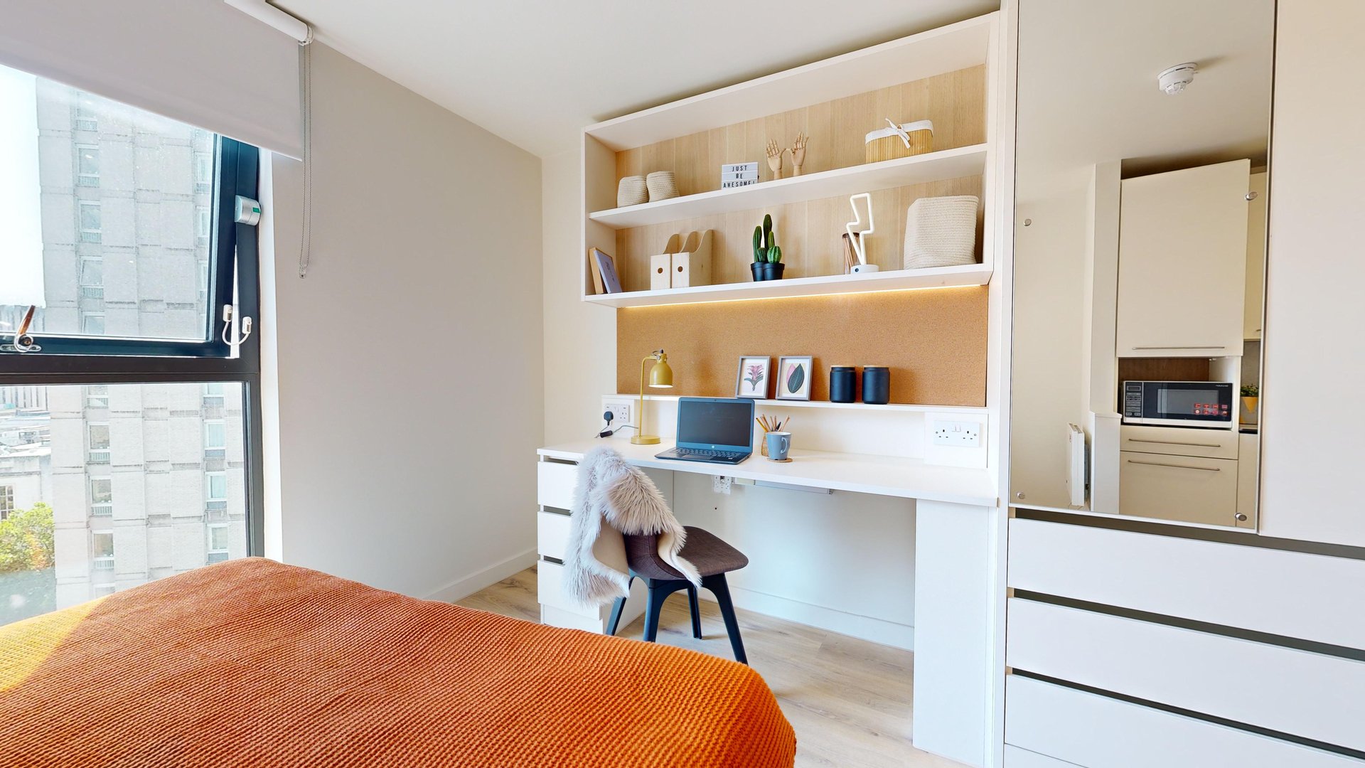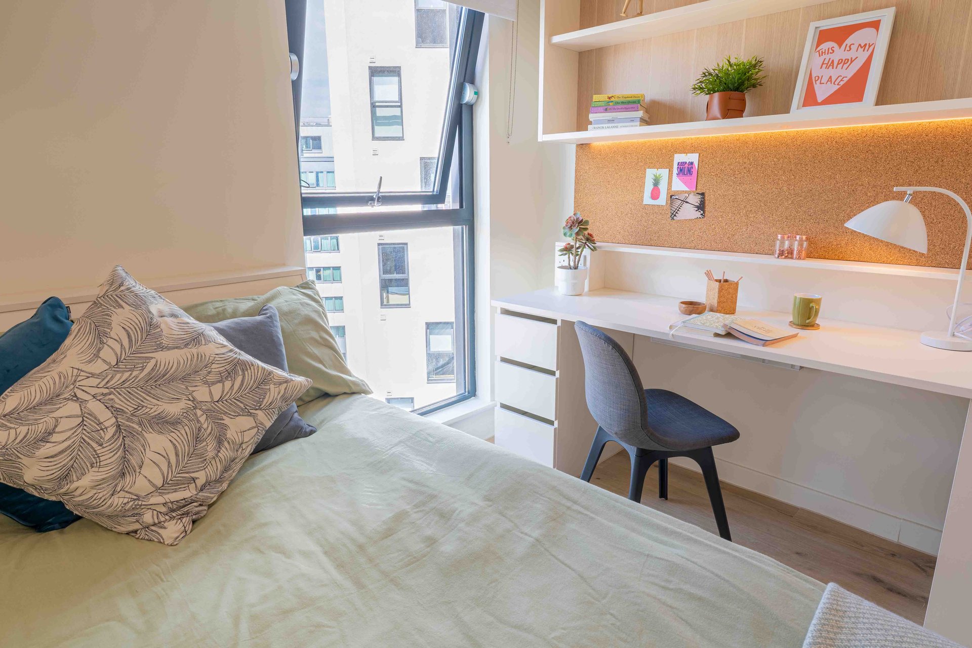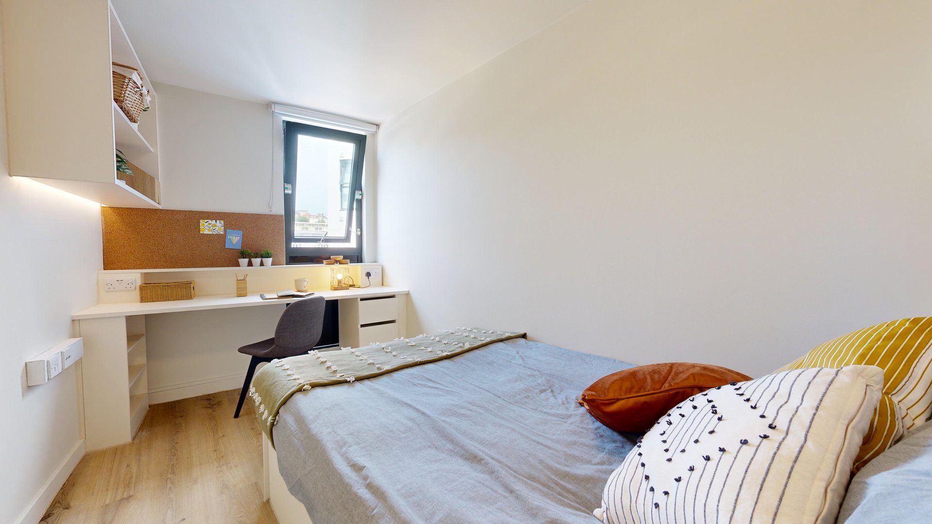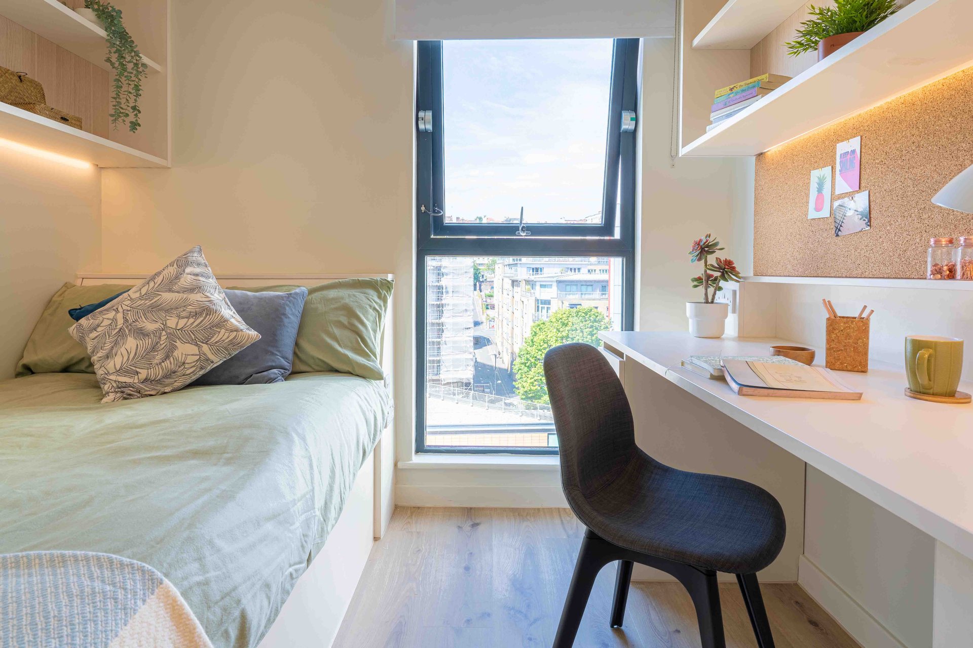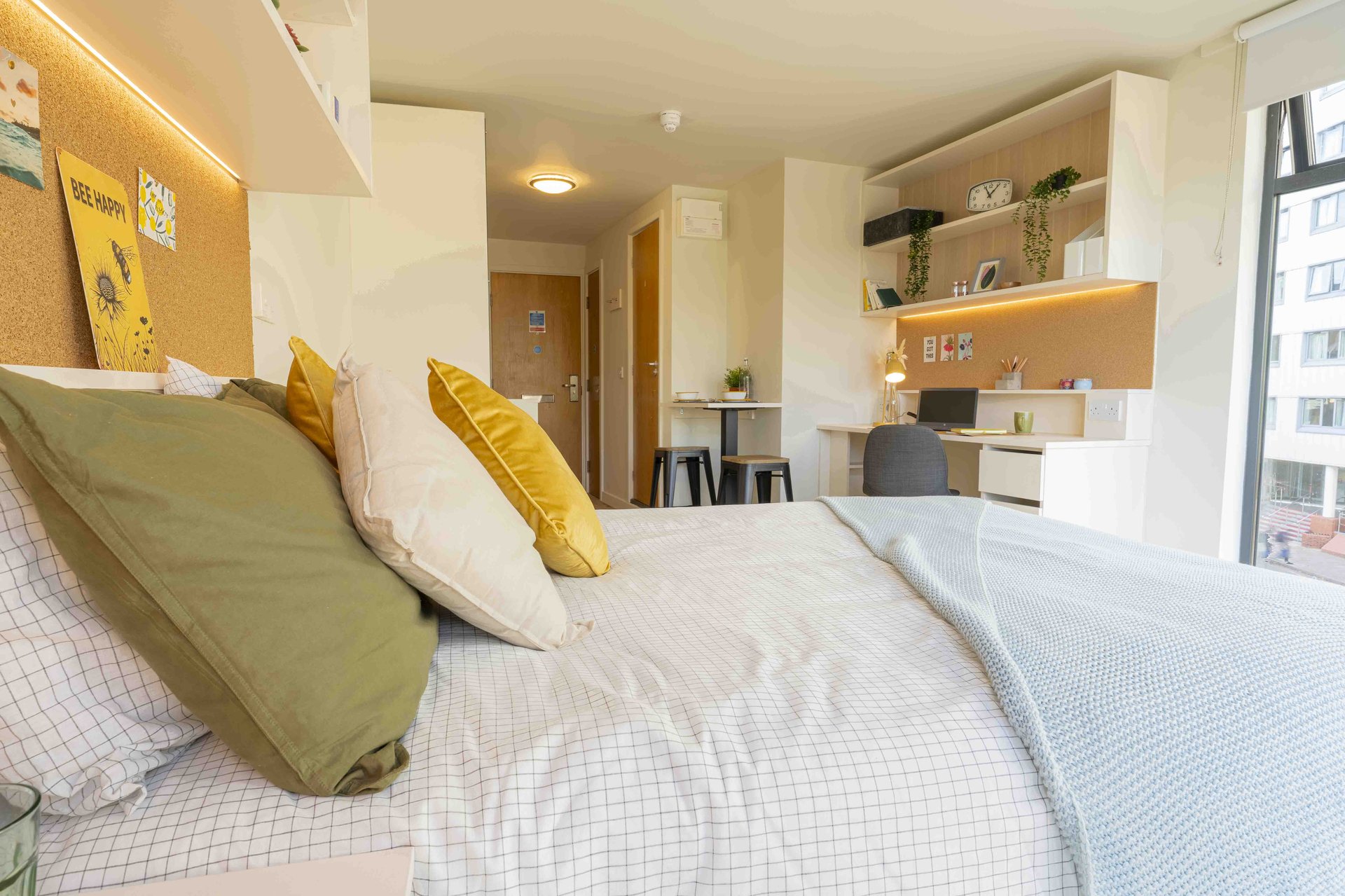 This room has had a makeover. Expect extra lighting, more storage, a new mattress, and additional corkboards to personalise your space. Plus, you'll get new appliances to spice up your kitchen.