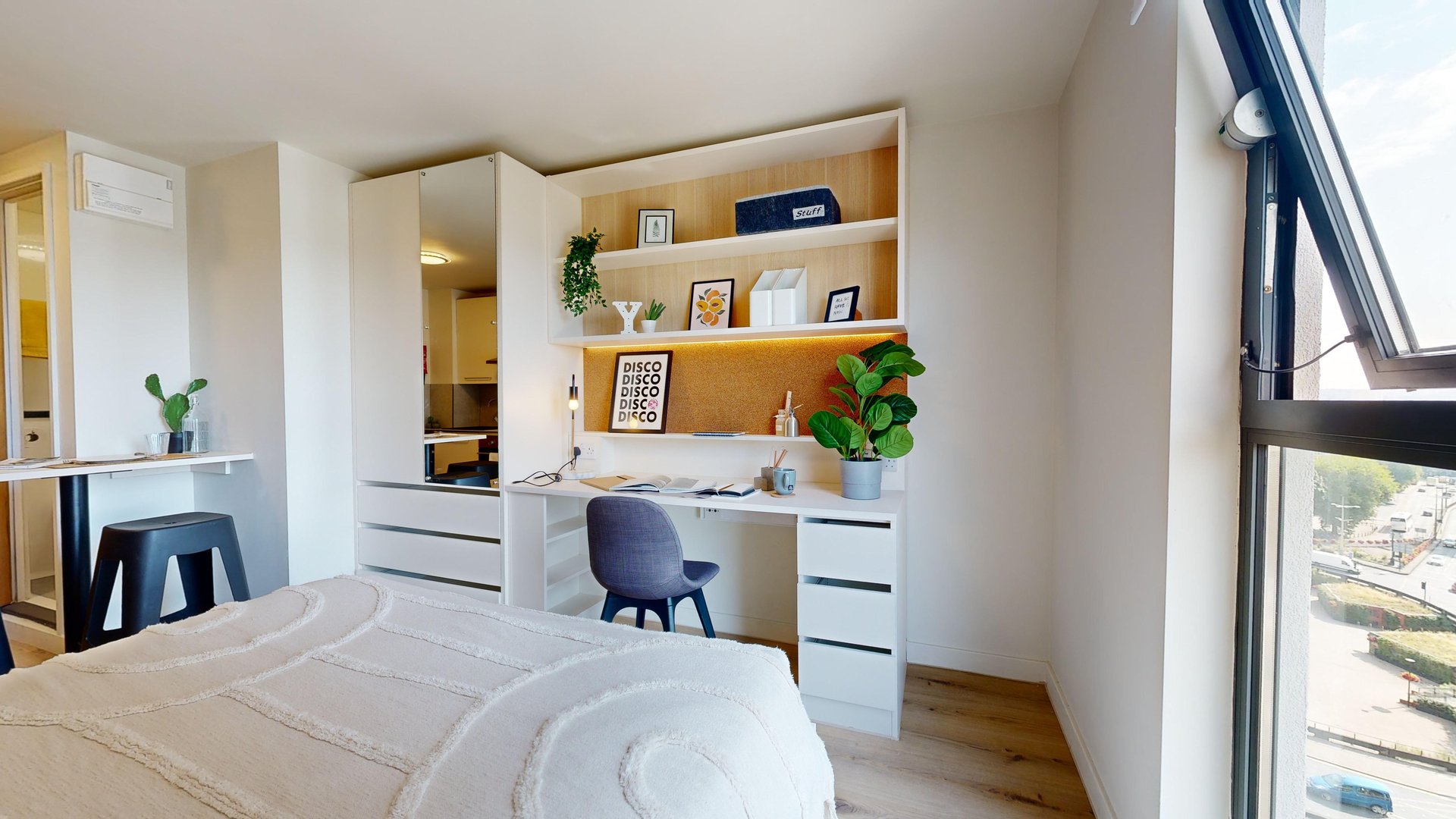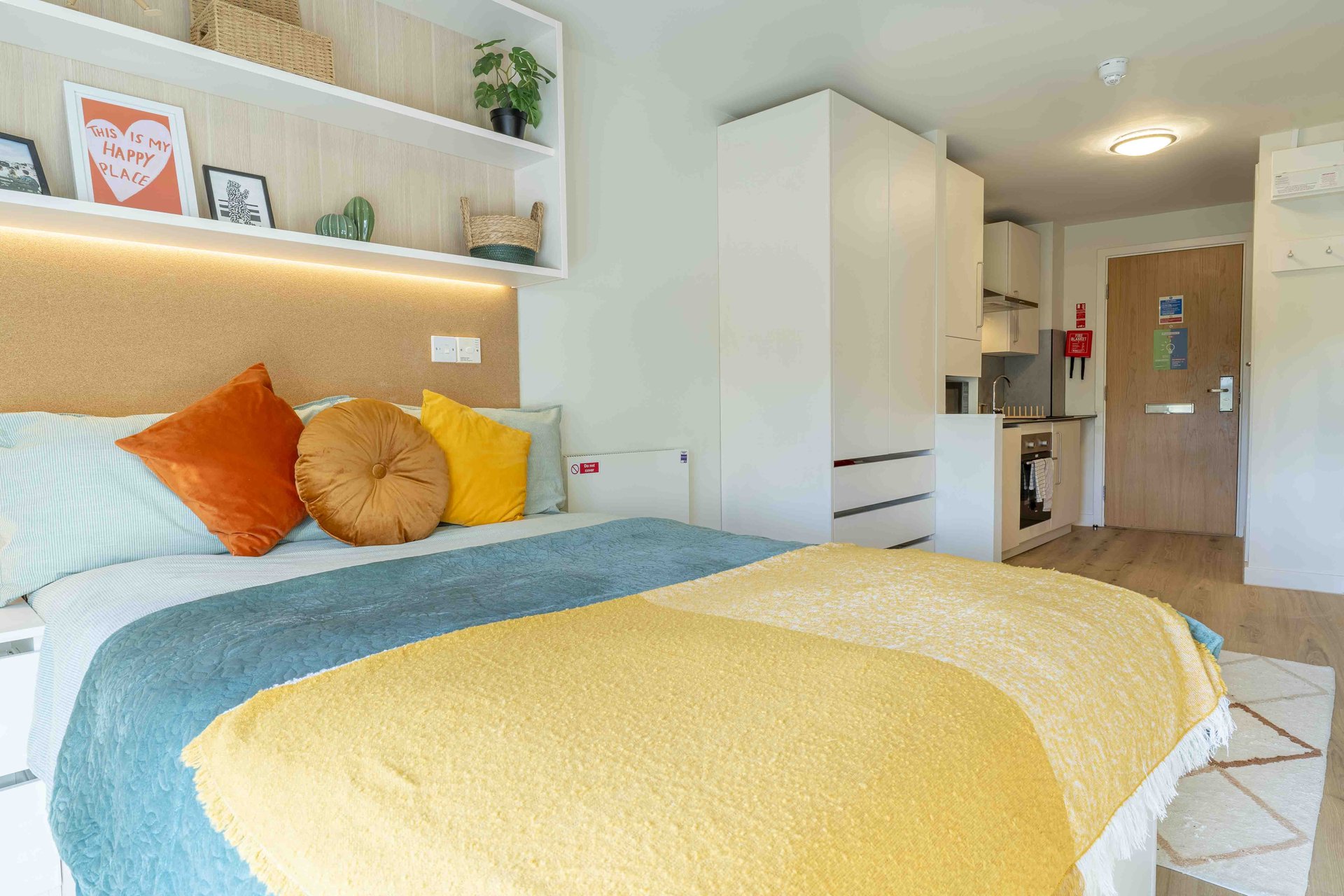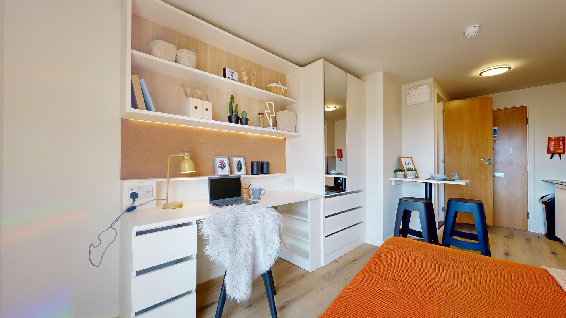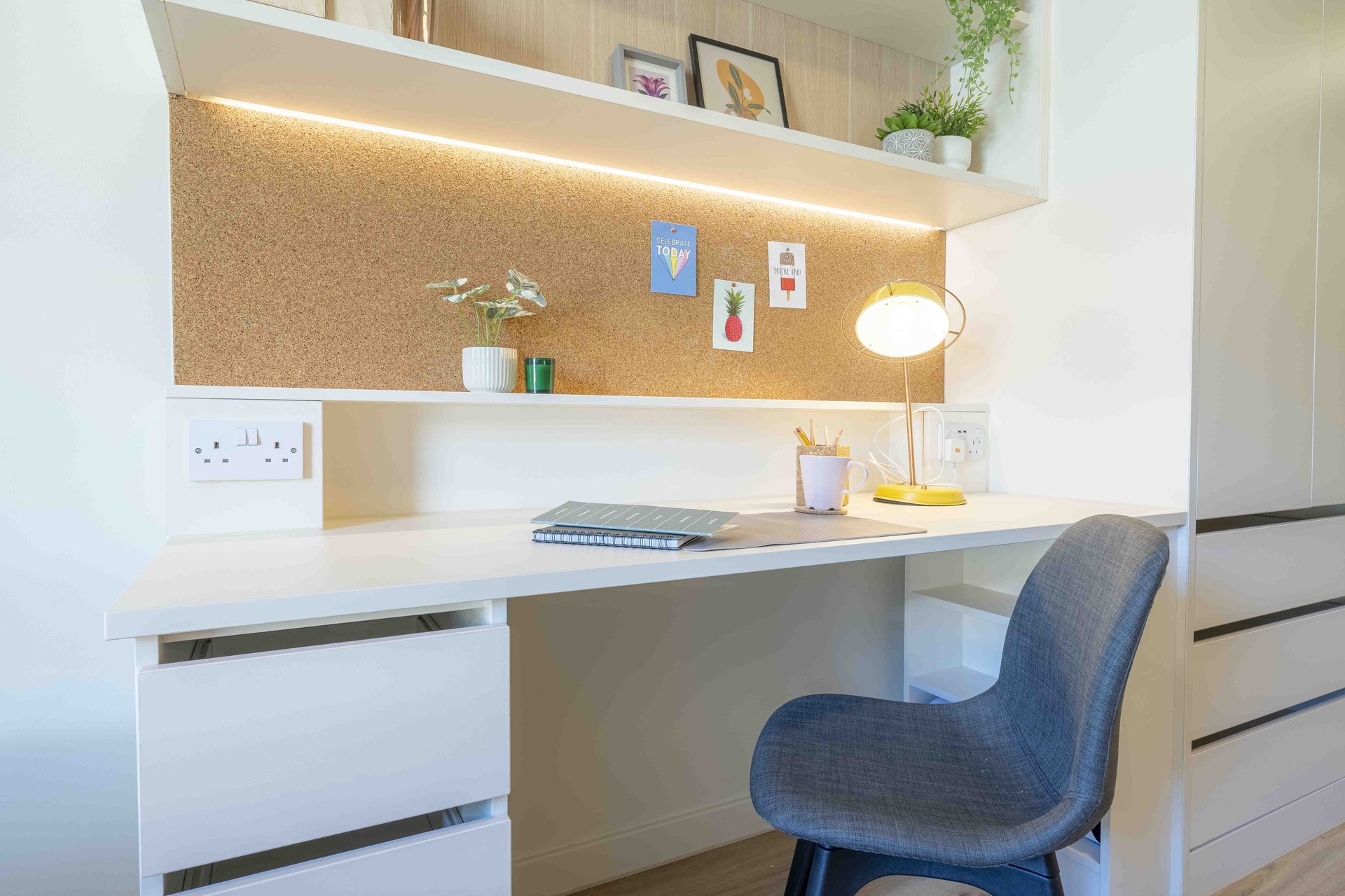This room has had a makeover. Expect extra lighting, more storage, a new mattress, and additional corkboards to personalise your space. Plus, you'll get new appliances to spice up your kitchen.