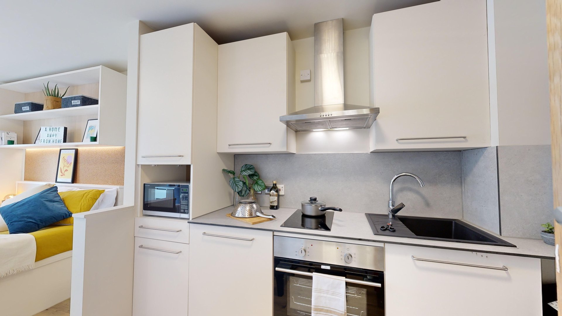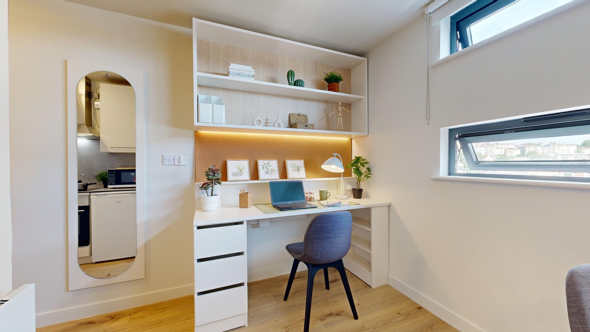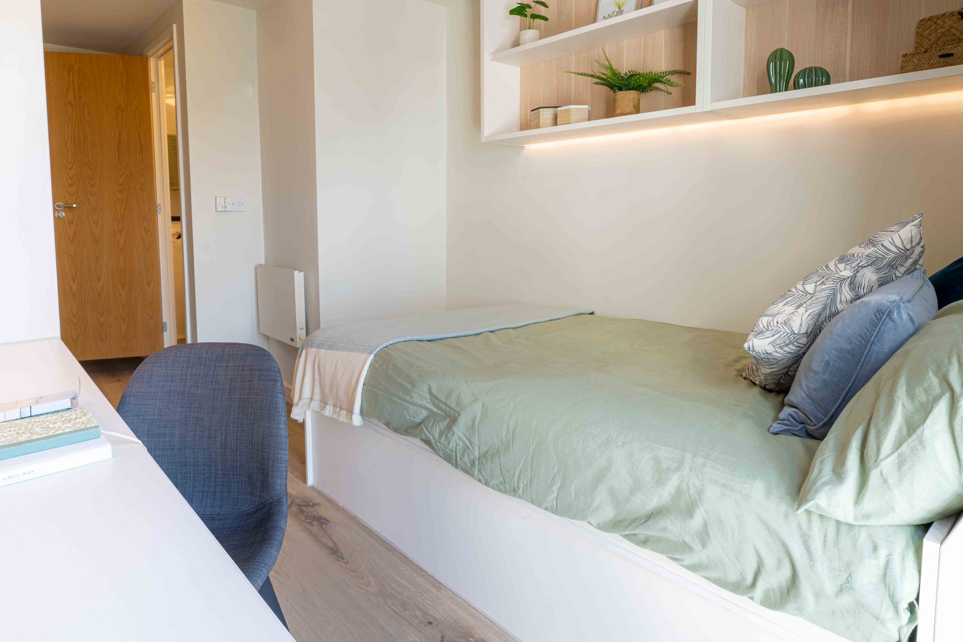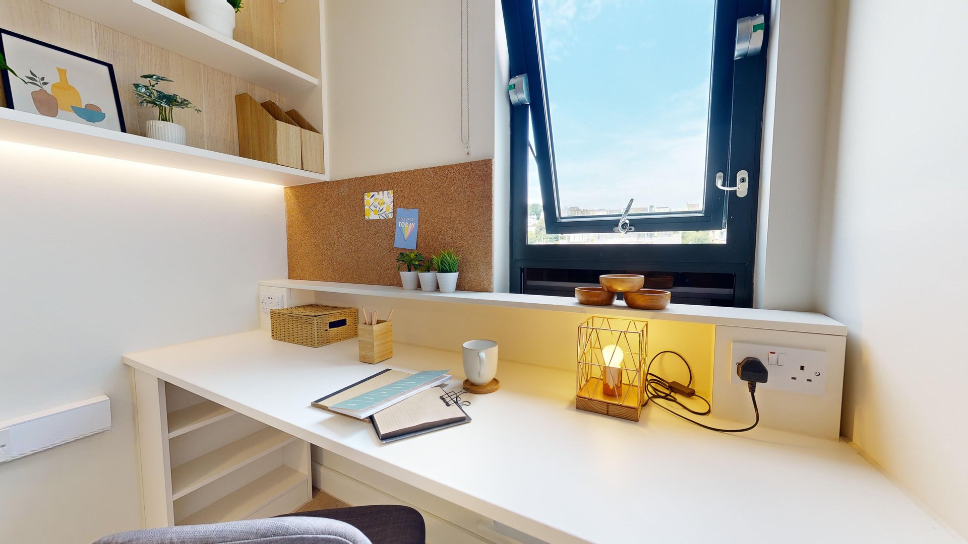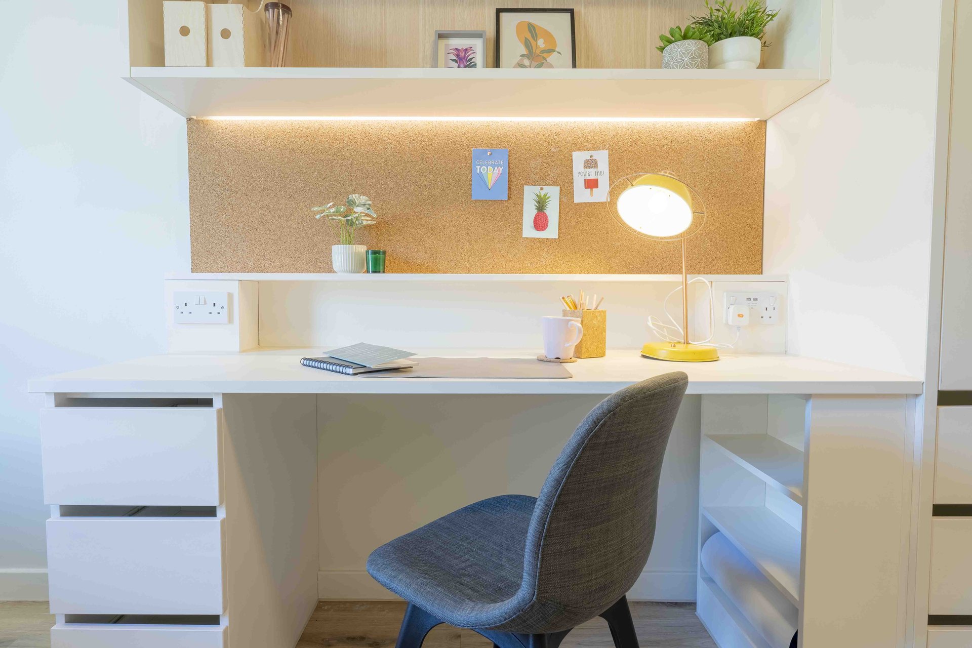 This room has had a makeover. Expect extra lighting, more storage, a new mattress, and additional corkboards to personalise your space. Plus, you'll get new appliances to spice up your kitchen.