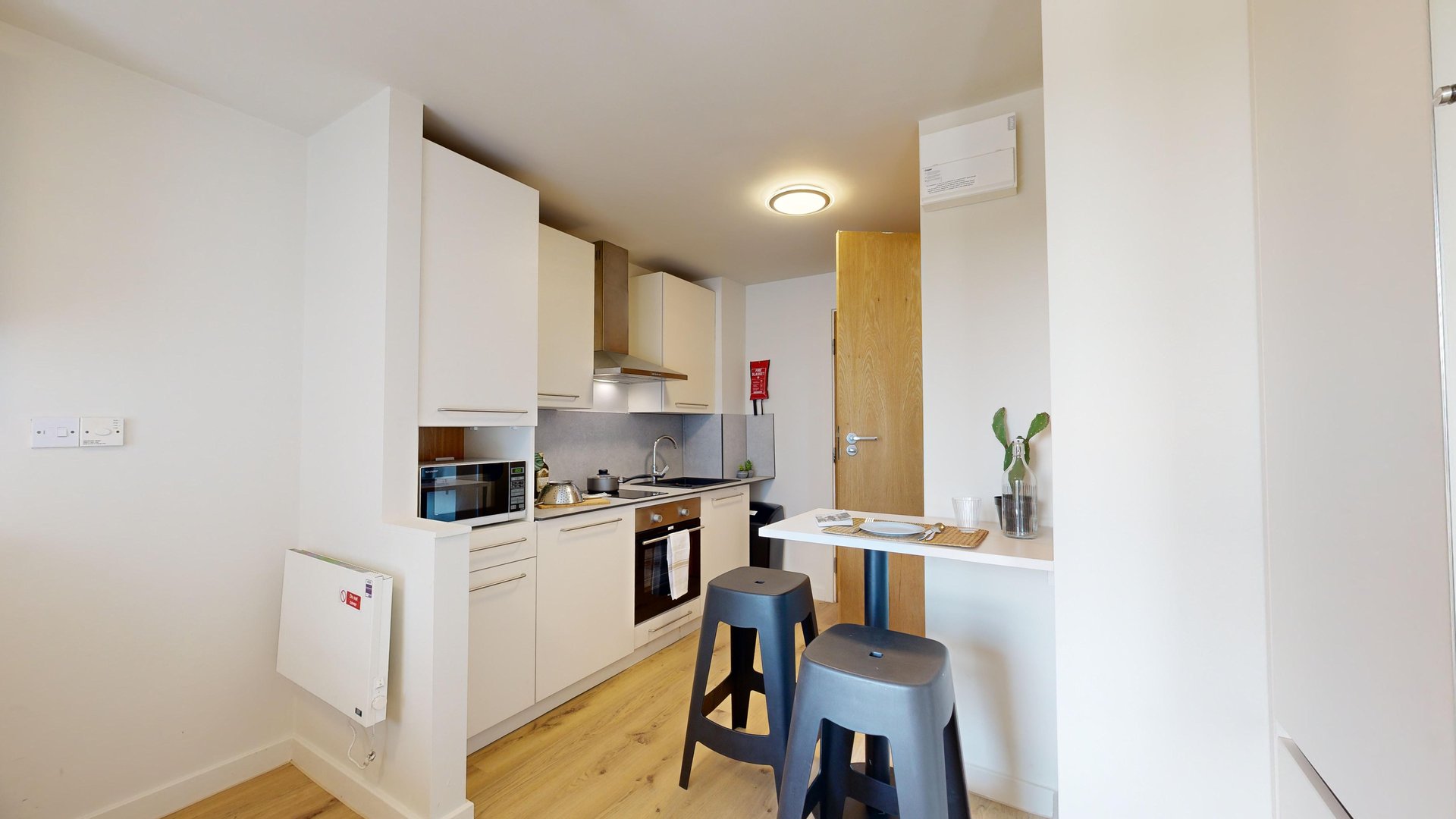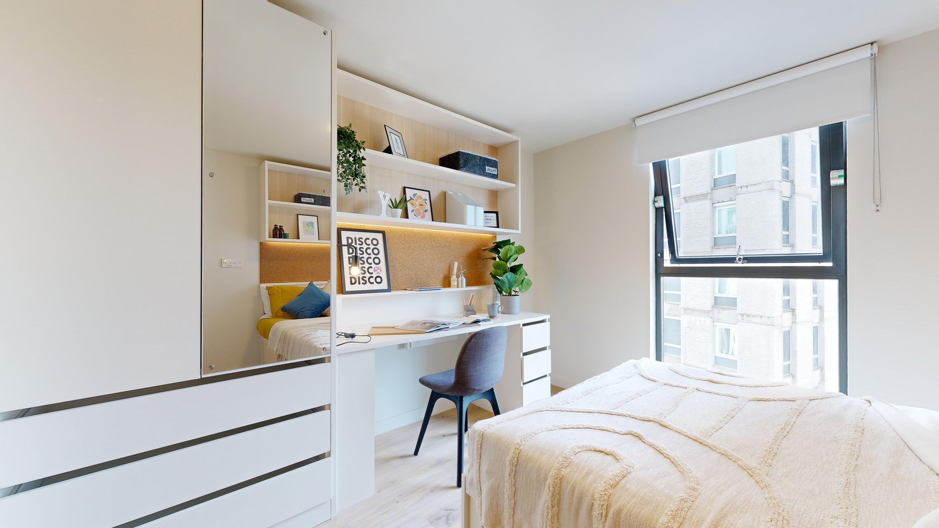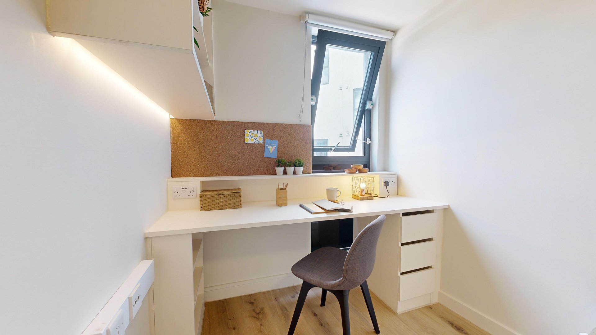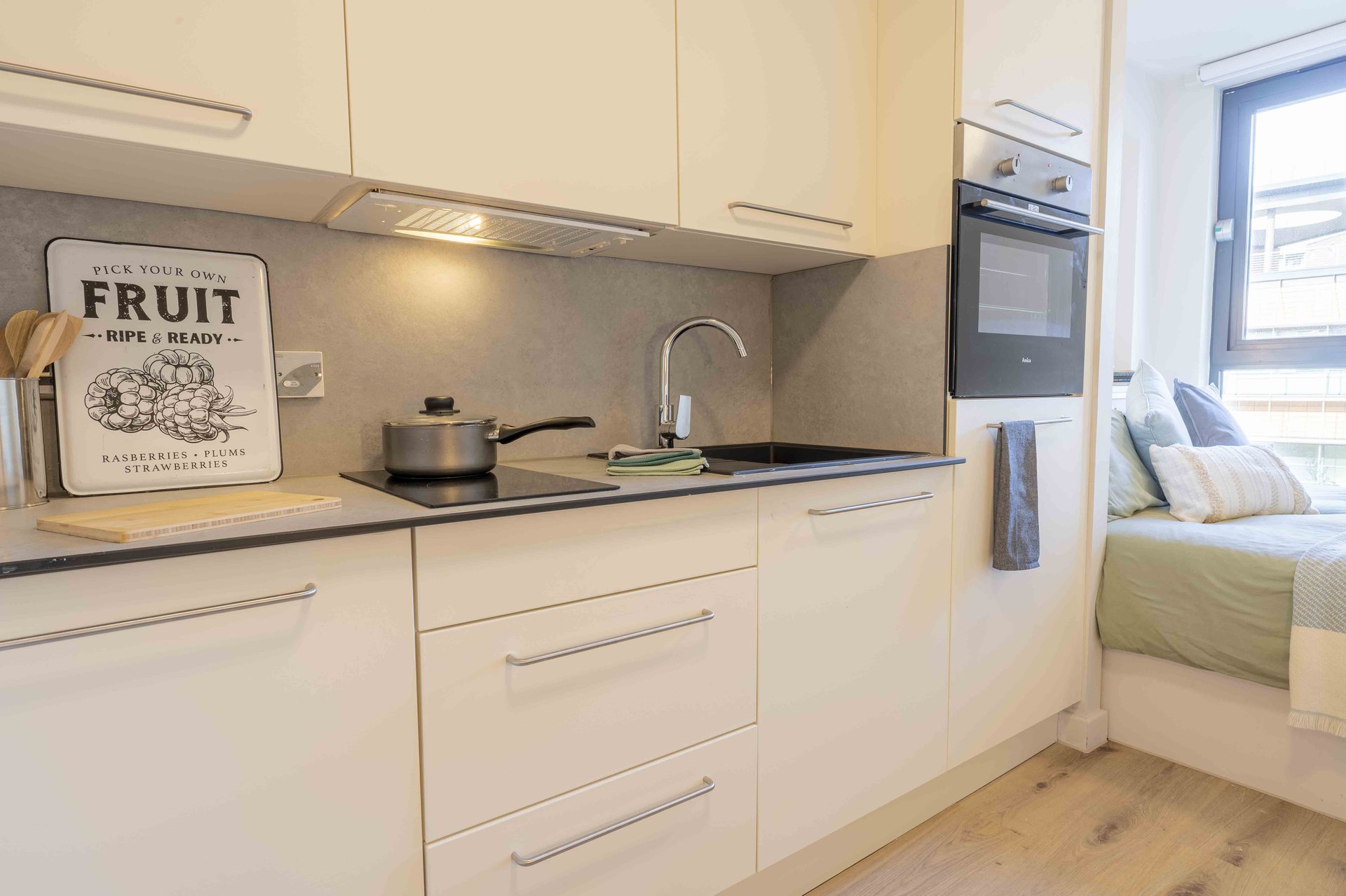 This room has had a makeover. Expect extra lighting, more storage, a new mattress, and additional corkboards to personalise your space. Plus, you'll get new appliances to spice up your kitchen.