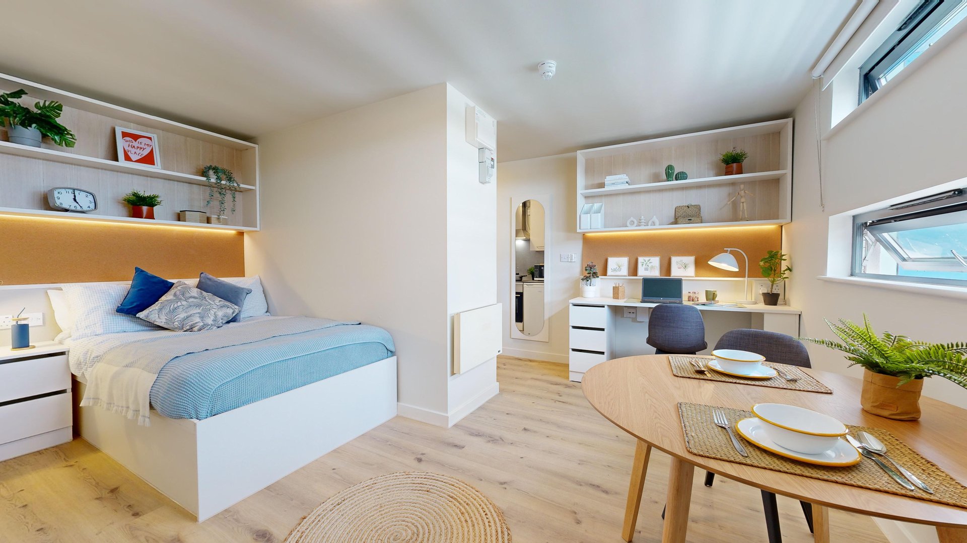 With 13 sq m of living space, storage and the privacy of your own bathroom, these rooms are great value for money.