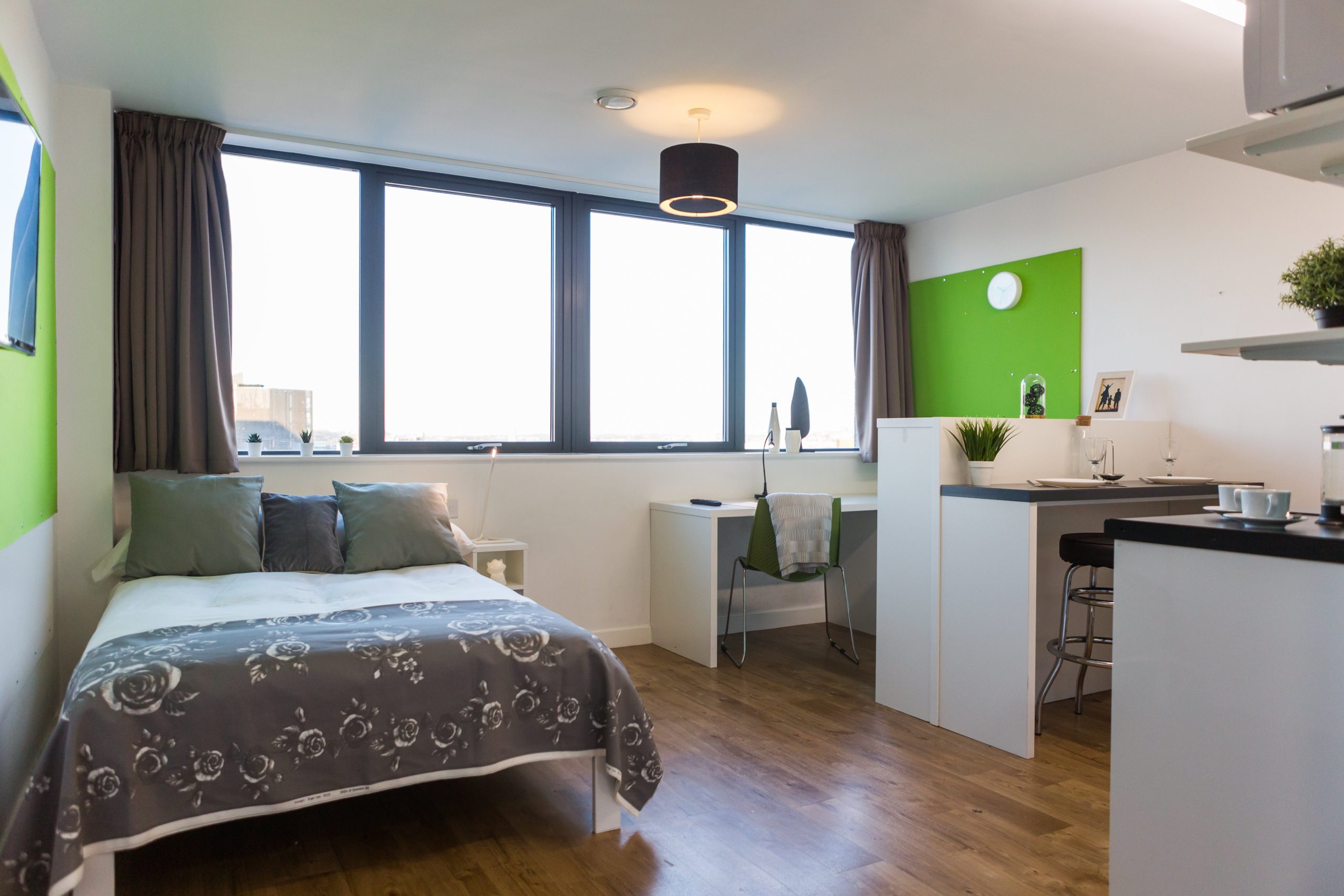 The Deluxe Studios offers better features than the Premium Studio. This studio is one of the largest studios in Bristol. An en suite bathroom and private kitchen have amazing facilities. Students can relax on the double bed or study in the designated study area. The laundry room has a washer and dryer to keep your clothes fresh. The free Wi-fi has a speed of 200Mbps.
