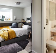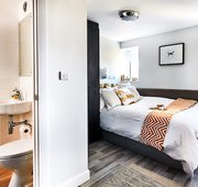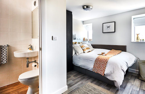 A private 11-11.5m2 bedroom (and your own private bathroom) within a 2-bedroom interconnecting studio 32” television in each bedroom (licence not included) 4ft double bed with under bed storage Double USB chargers Privacy lock at interconnecting door Well-designed desk space Luxury mesh-backed adjustable study chair Pin-board Desk Light Double wardrobe with shelves and full-length mirror