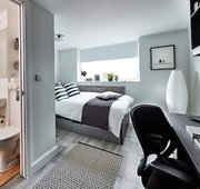 A 13-16m2 bedroom and your own private bathroom in a shared apartment with 3, 4 or 5 bedrooms TV Bracket in each bedroom (we fit the TV for you) 4ft double bed with under-bed storage 4ft x 6'3ft Mattress Double USB chargers Large desk space Double wardrobe with shelves and full-length mirror Private en-suite bathroom with shower