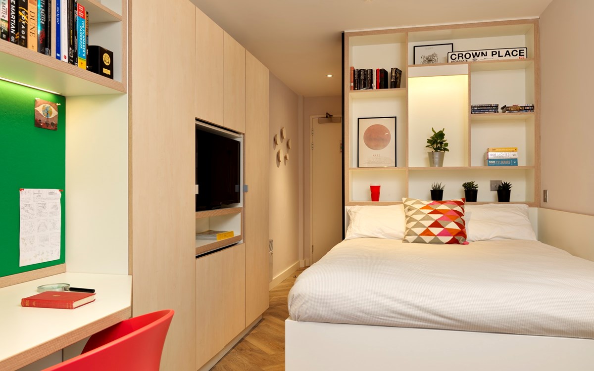 Our twin studios are all contemporary in design and include the latest technology. They each come with two beds, their own en-suite bathroom, private kitchen area and plenty of space for both of you to study or relax. Double Occupancy available for £342.50.