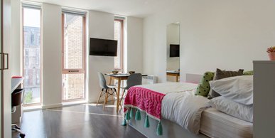 All of our studios come with a small double bed, TV, loads of workspace and storage, en suite with shower and your own mini-kitchen. Our Bronze Studios offer a whopping 19-21sqm of space! Plus, we don't charge any extra for couples wanting to share!