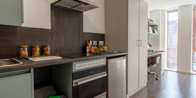 All of our studios come with a small double bed, TV, loads of work space and storage, en suite with shower and your own mini-kitchen. Our Gold Studios offer even more space with 24-25sqm of space. Plus, we don't charge any extra for couples wanting to stay!