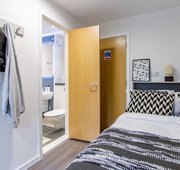 All of our Silver En Suite rooms come with a small double bed, loads of work space, plenty of storage and your own private en suite with shower. Our Silver En Suites come within our 3 bed shared apartments and offer over 13sqm of space. Plus, a spacious shared kitchen and living room installed with a TV to catch up on all your favourite shows.