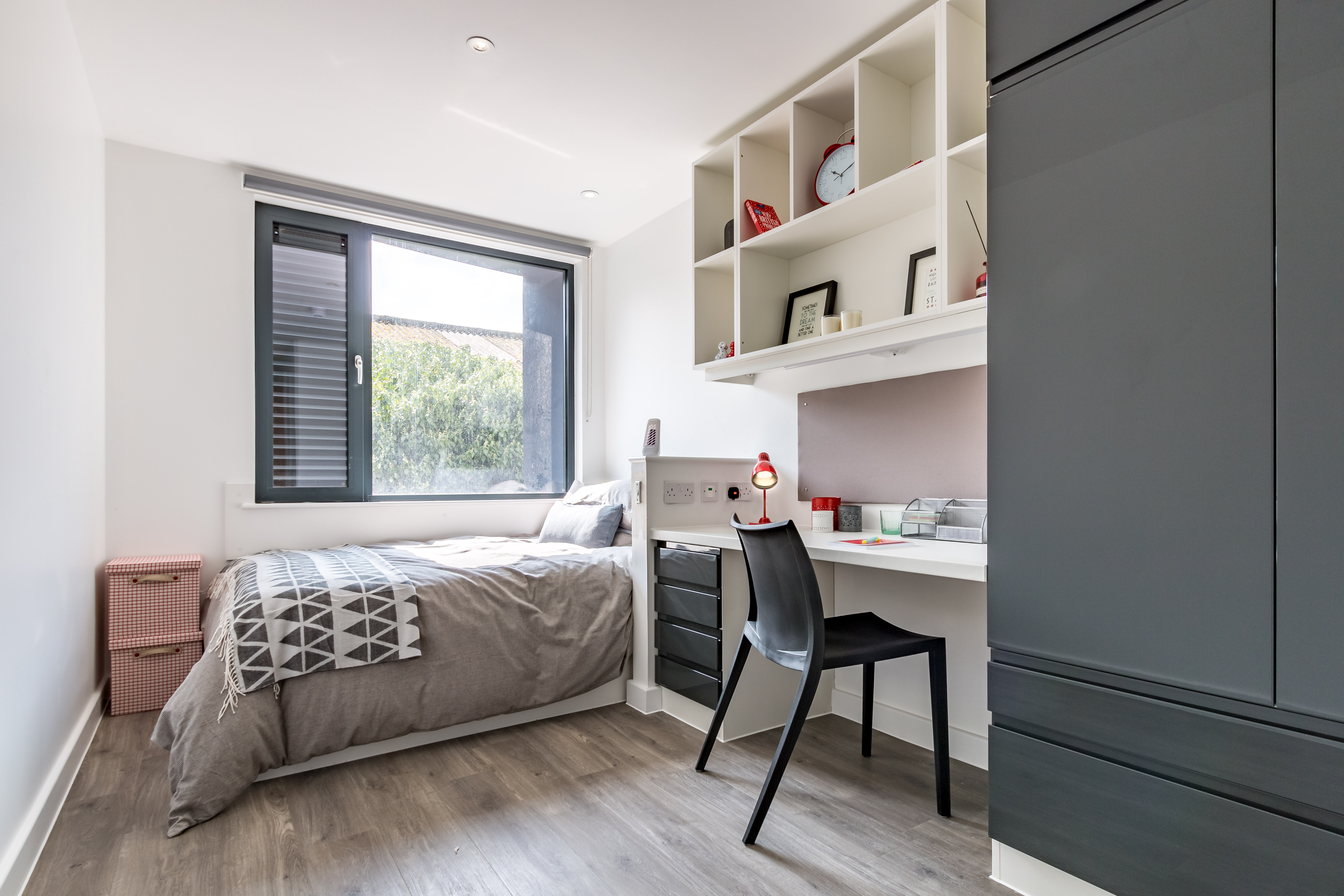 Room size: 14.7 sqm, Our most affordable en-suite student room, fitted with all of our useful standard features plus a shared social space and kitchen to share with your flatmates.