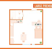 Studio Size: 19.9sqm, A larger student studio with premium features of a double bed, and more floor space. Our luxe plus studio is fitted with all our standard features plus a private well-equipped kitchen, dining table and en-suite.