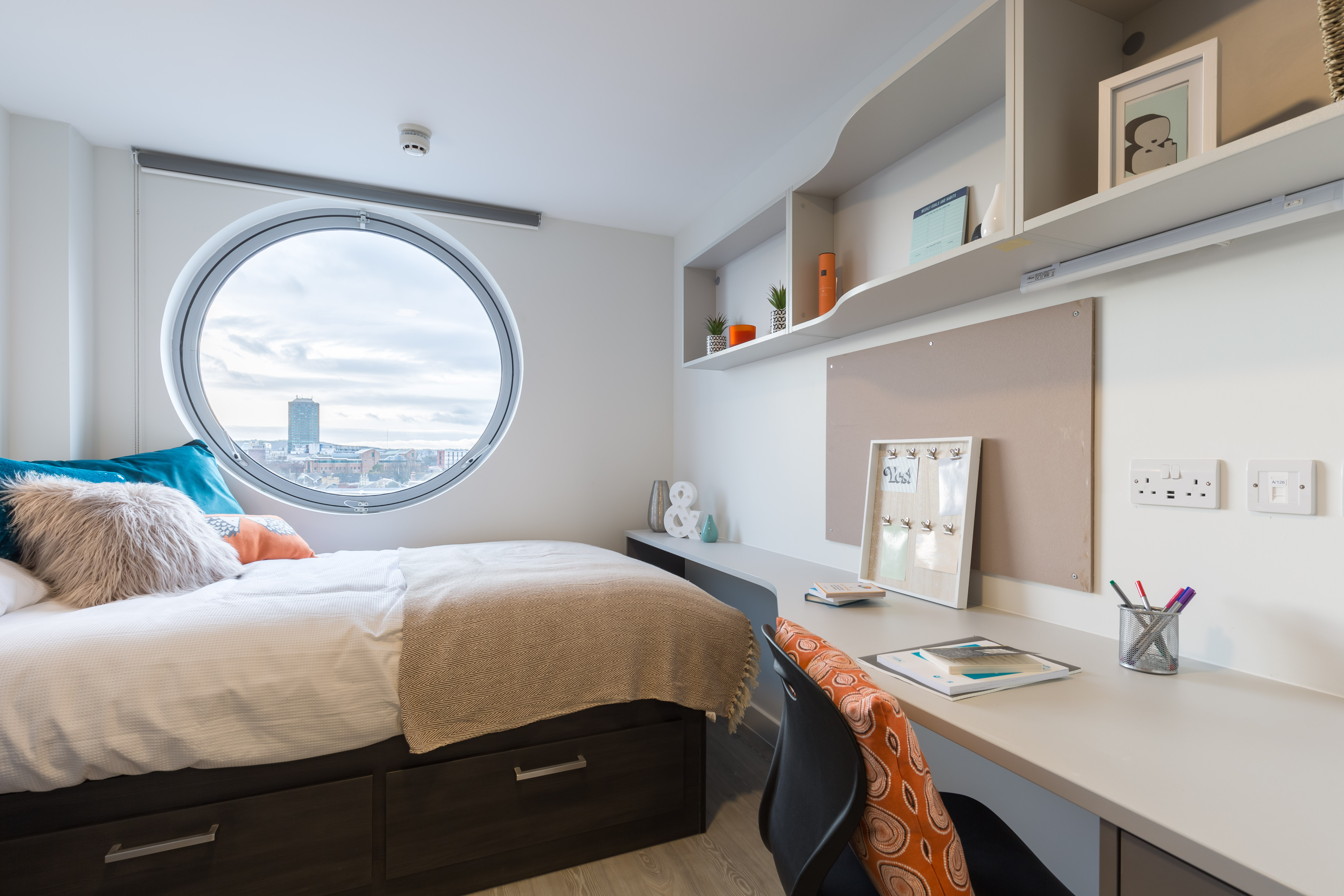 Floor: 6th, Classification: Premium Plus, Includes: Fully-furnished studio room with a 3/4 double bed, private bathroom and Private open plan kitchen. There's plenty of storage space including bedside table, wardrobe and underbed storage, plus a desk and chair for studying. Your open plan kitchen comes complete with oven, induction hob and under counter fridge. Free Wi-Fi & wired internet (100Mb) plus contents insurance and all your bills included as standard. These studios face onto City Road and the windows can't be opened. A fully-integrated dual ventilation system is in place allowing fresh air to be circulated around the studio 24/7. Extra features: Room size from 16.5m², 3/4 double bed, en-suite shower room, private open-plan kitchen, electric heater, underbed storage, bedside table and wardrobe, desk & chair, all bills included, free Wi-Fi & internet, and free contents insurance.