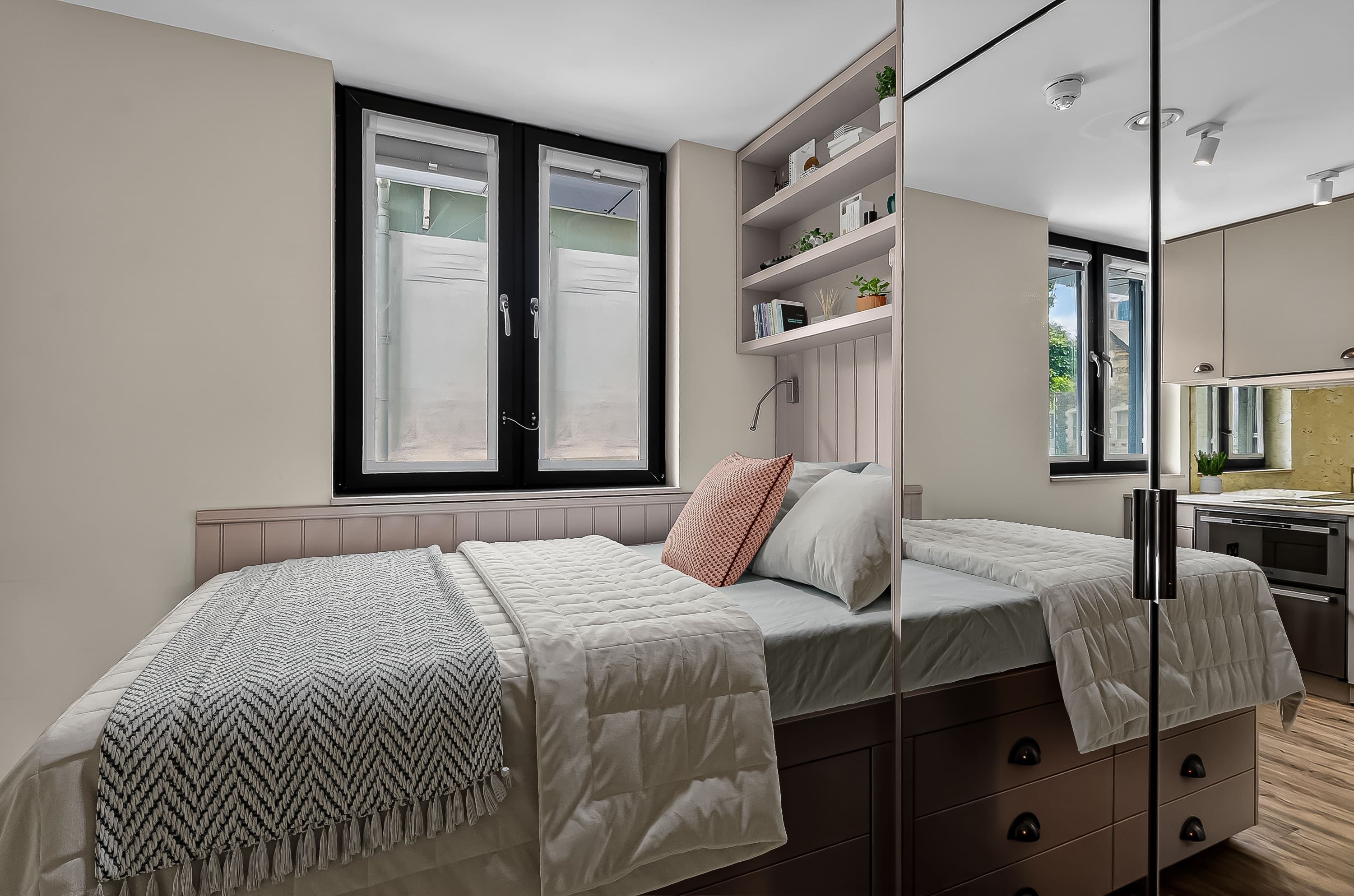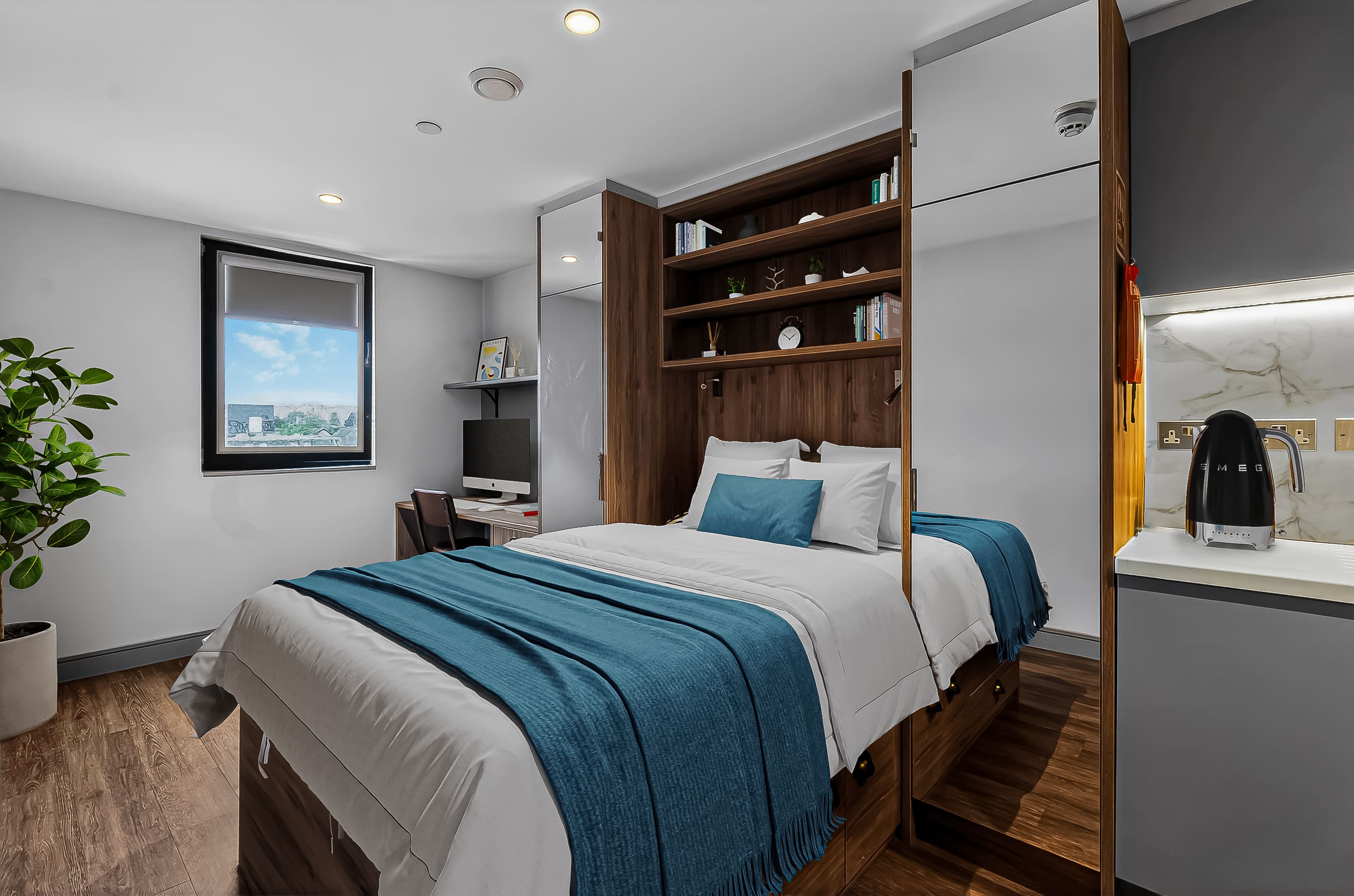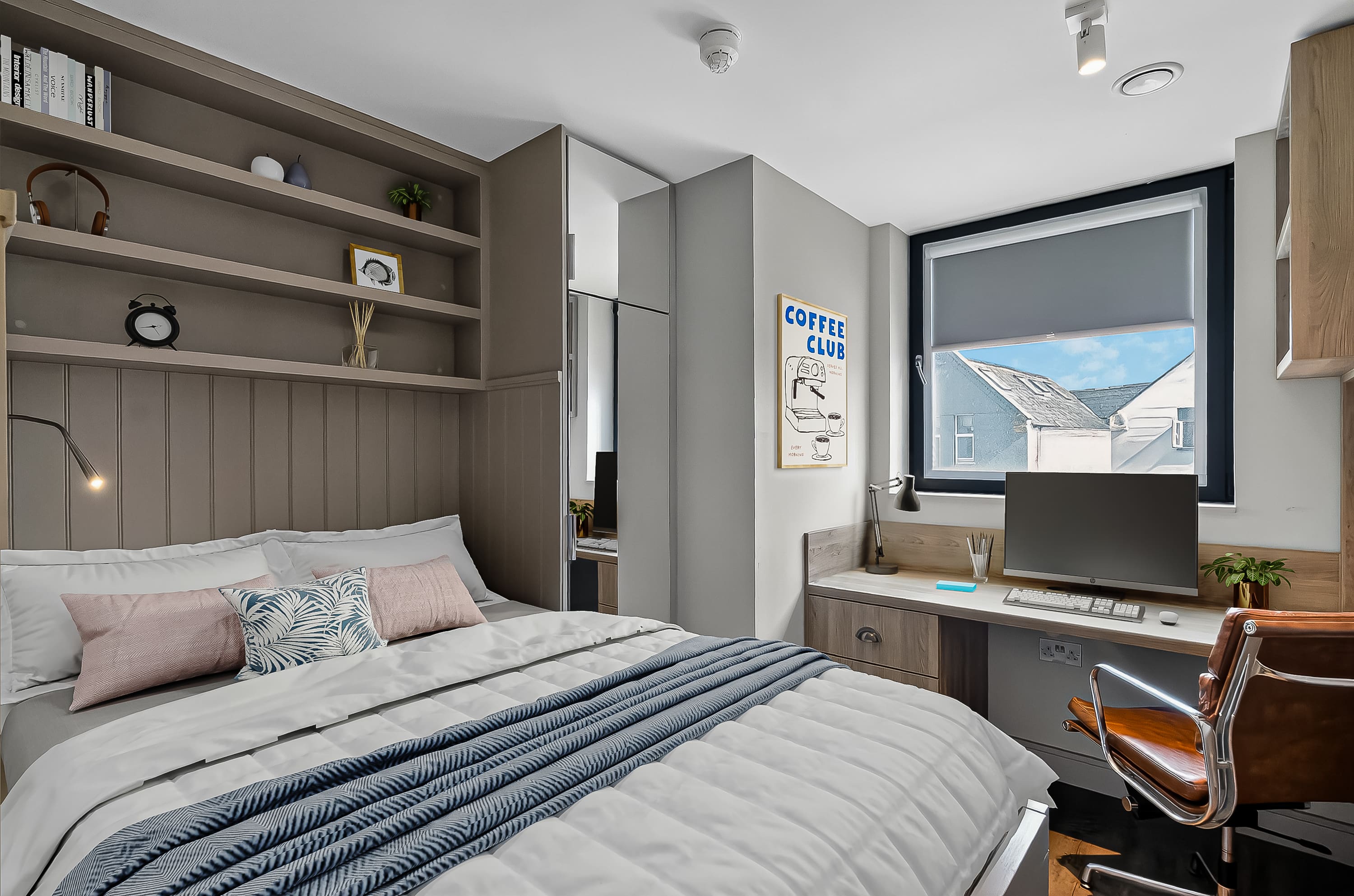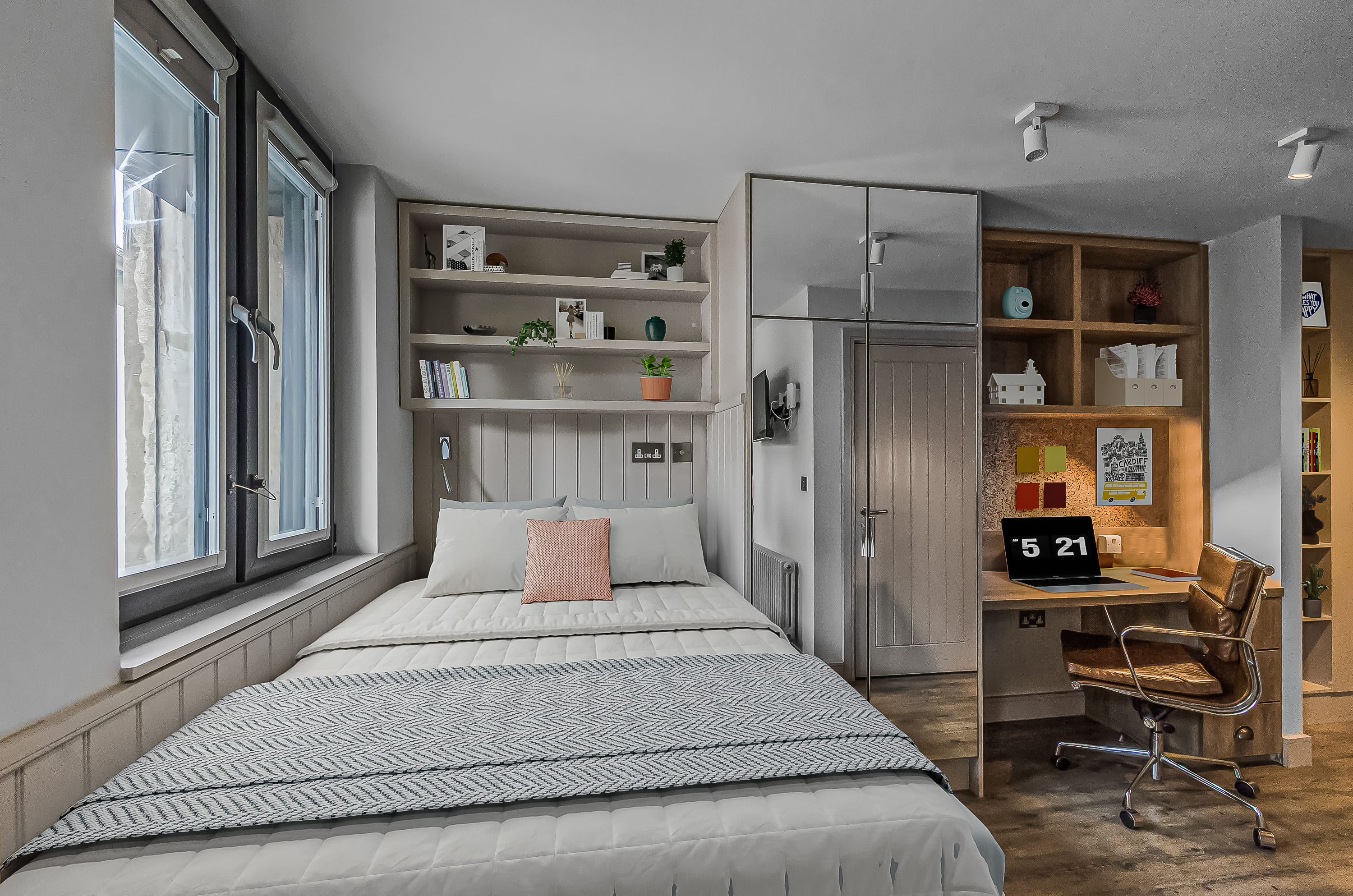 The rooms are wonderful too, modern design and just perfect for classy student living. I stayed in a bronze studio all 3 years, and that size was perfect with so much storage too! A smart TV, a BIG showerhead, full length mirrors, double bed, dishwasher - what more could you ask for!