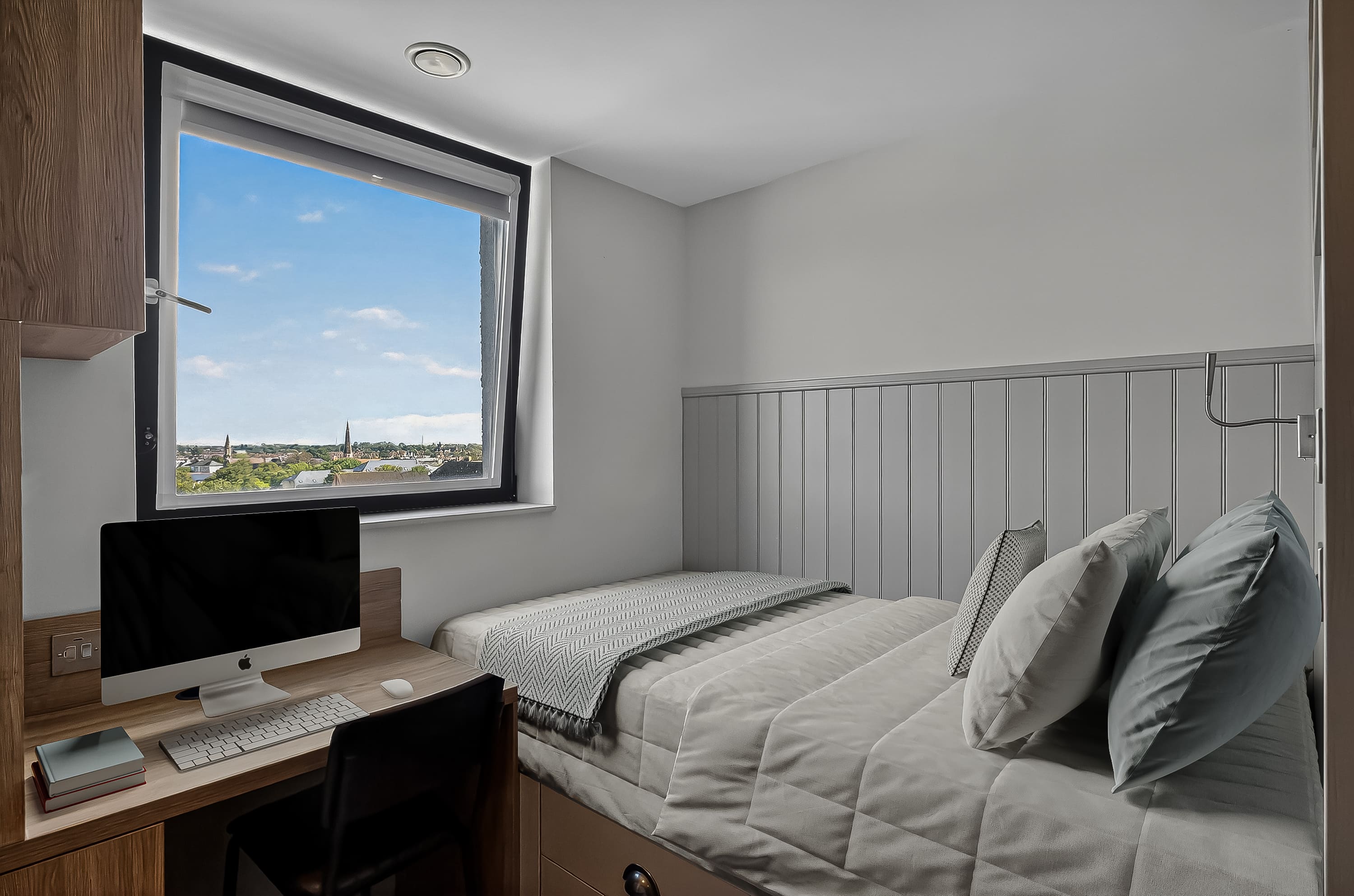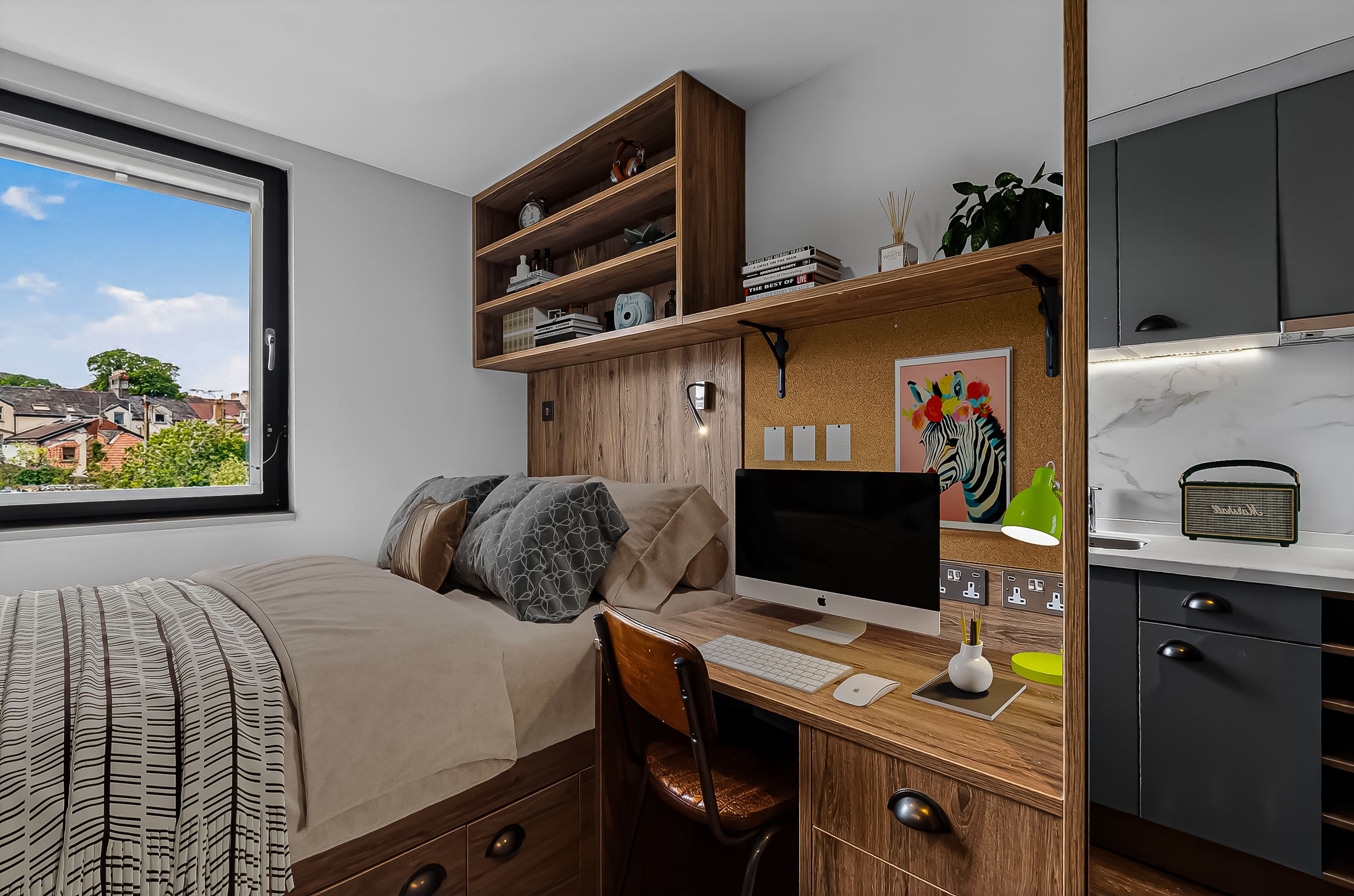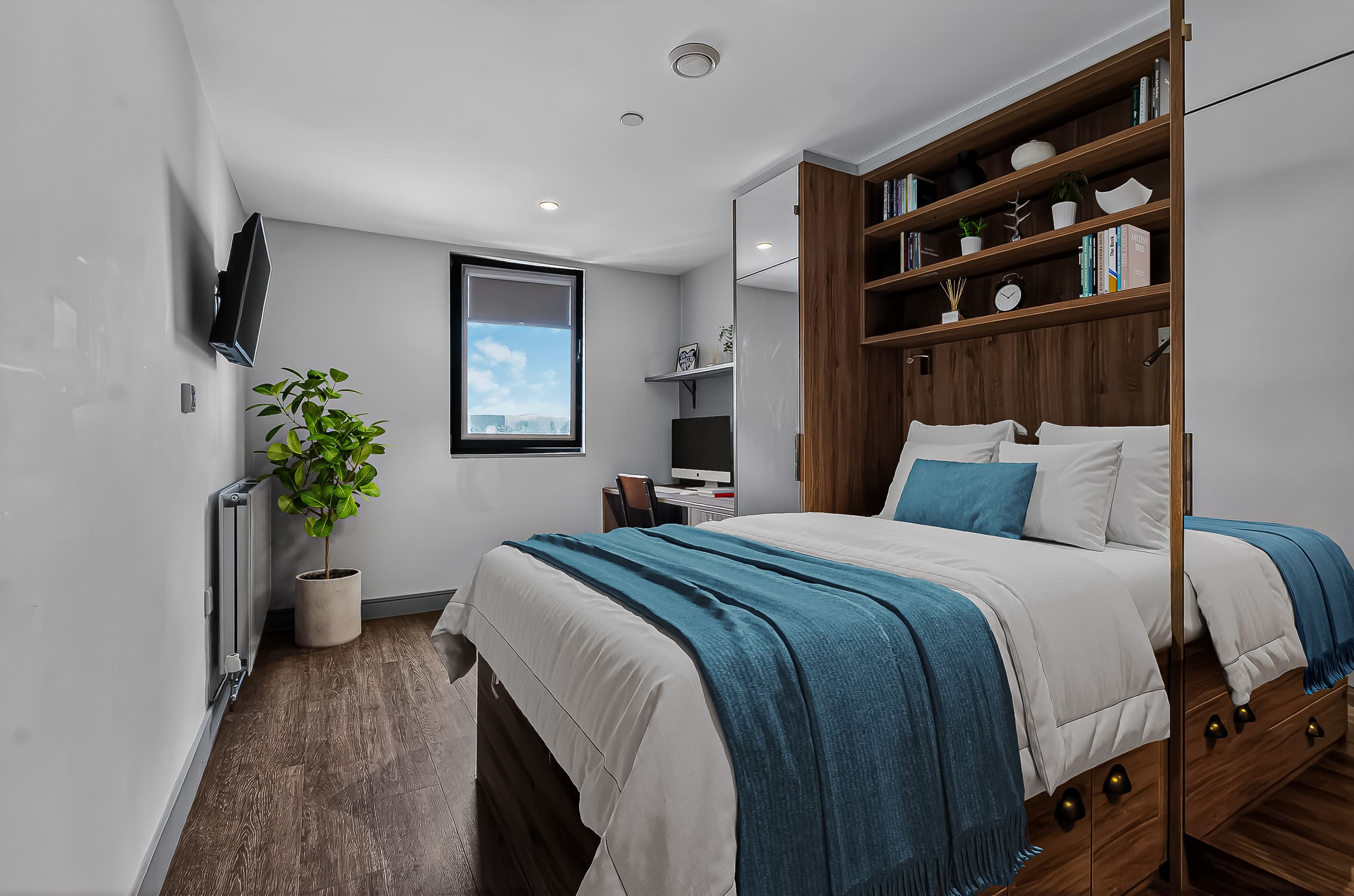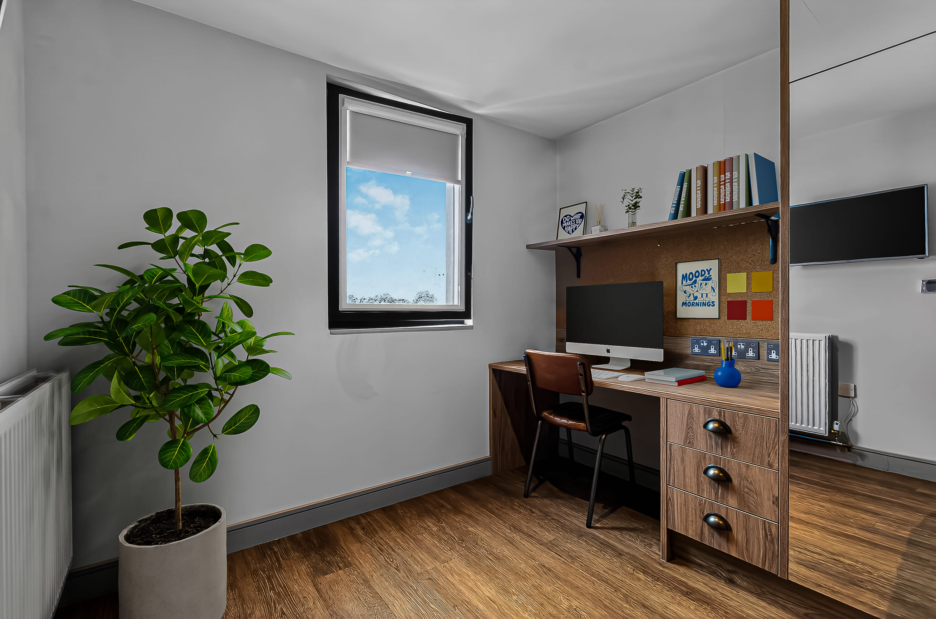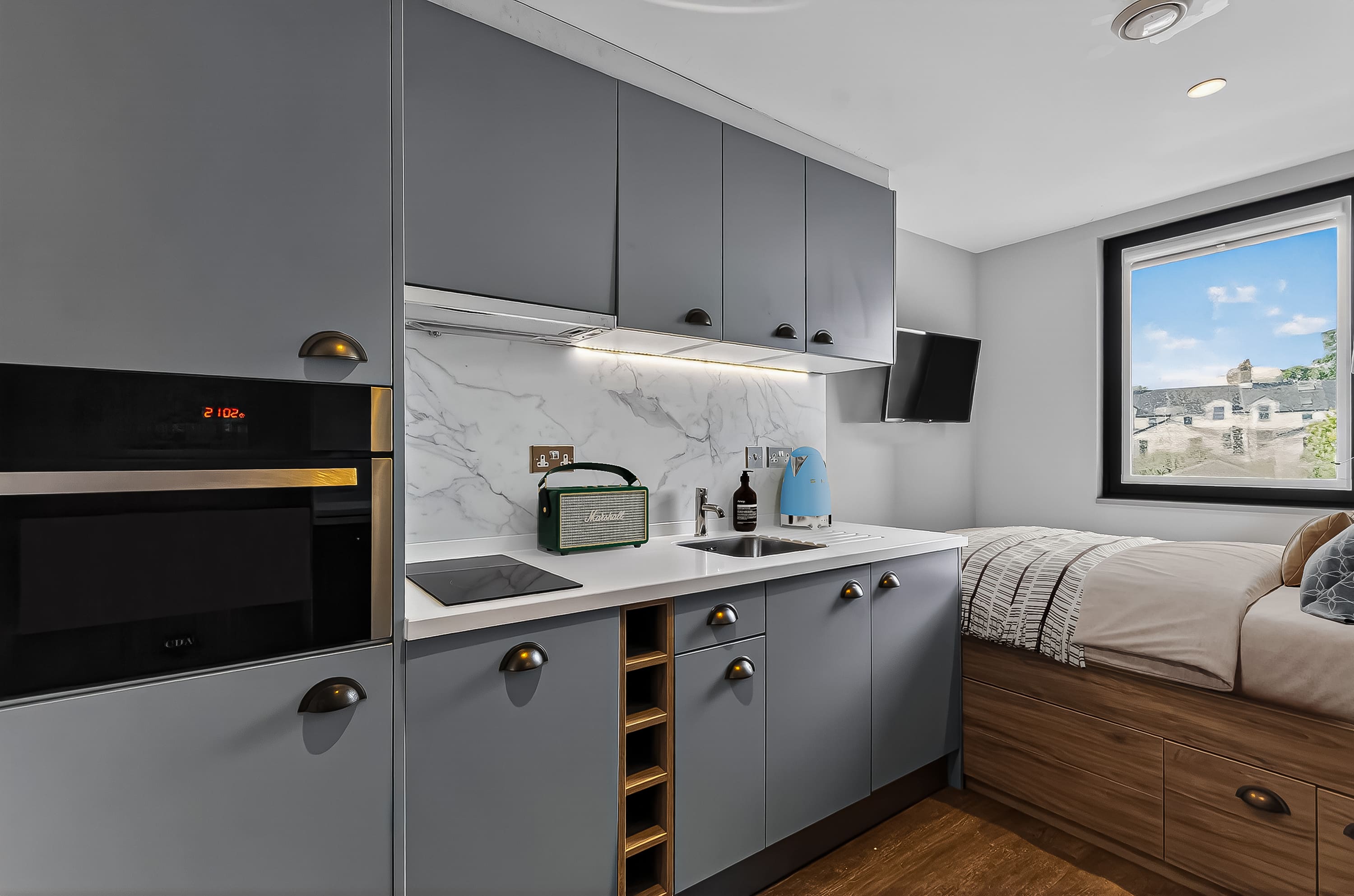The rooms are wonderful too, modern design and just perfect for classy student living. I stayed in a bronze studio all 3 years, and that size was perfect with so much storage too! A smart TV, a BIG showerhead, full length mirrors, double bed, dishwasher - what more could you ask for!