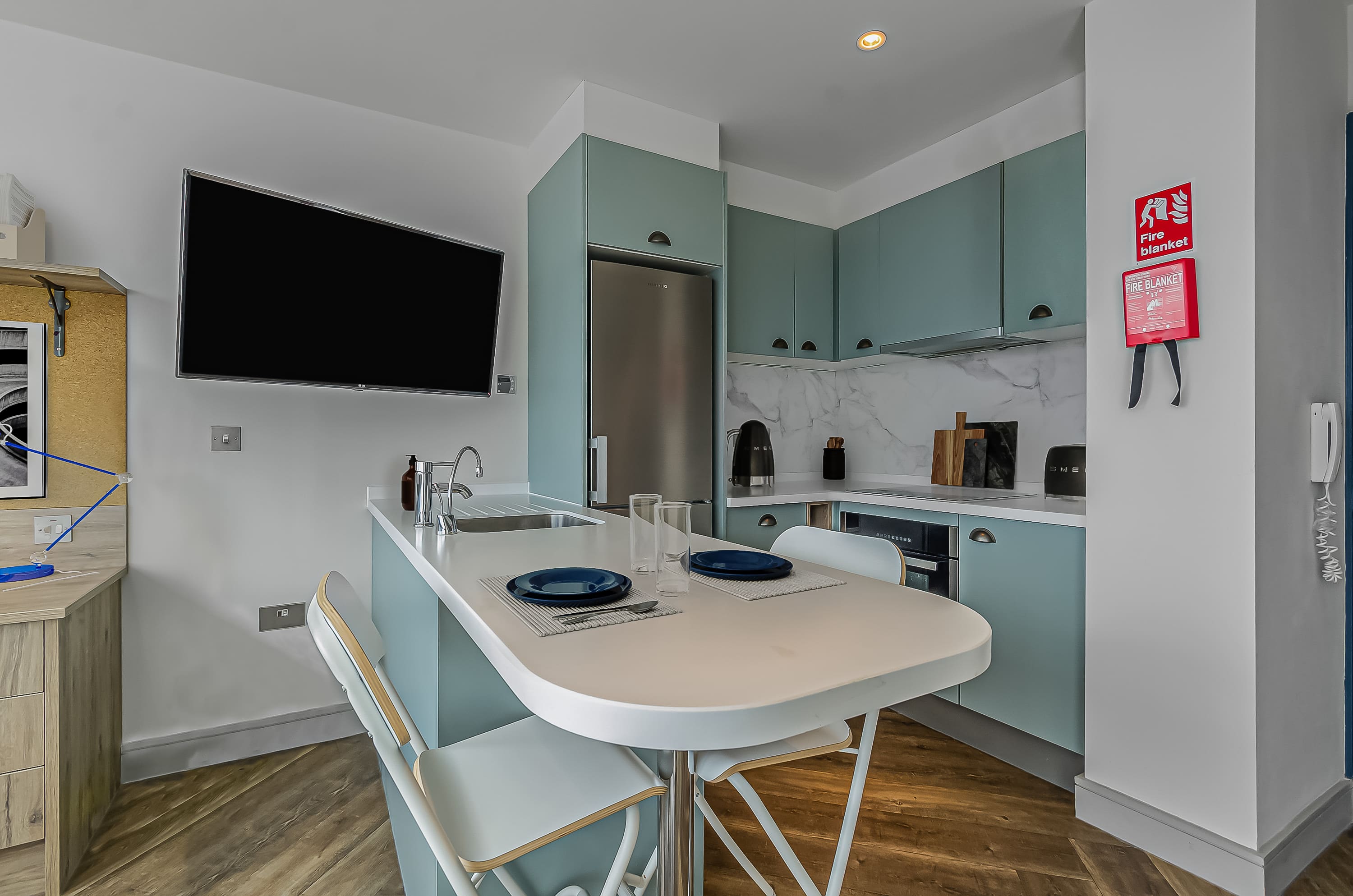 Then there's the cinema room, make friends with everyone and then chill in the cinema watching TV all nice and cosy - it really feels like being in the living room at home! The doors to the cinema room are sliding doors so you can even be social whilst having the TV on. There's a dining room downstairs where you can host friends or family, cooking and eating together (again, like being at home).