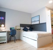 Room Size: 14.1m2 3/4 size (small double) bed with under bed storage Study desk Chair Wardrobe Drawers Plenty of storage Pinboard Coat hooks USB sockets Mirror Pocket sprung mattresses Bedside plug sockets Keyless entry