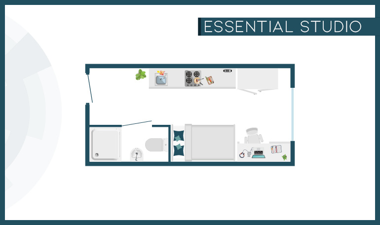What's in the room? - Room sizes may vary from 19m2 to 20m2 - Your own private Studio Apartment
