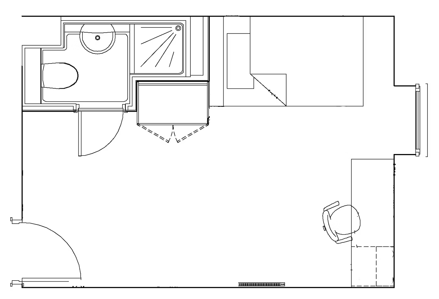 Self-contained kitchen, bathroom and living space Approximately 19.43-20.40m² Small double bed Underbed storage, desk, chair, shelving and wardrobe provided in room