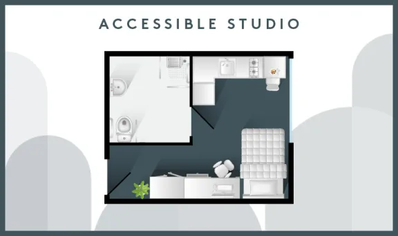 Room size: 21.9 - 23.0m2 --- Whats in the room? --- Bed - Chair & desk - Wardrobe - Private en-suite - Private kitchen with hob, oven fridge/freezer