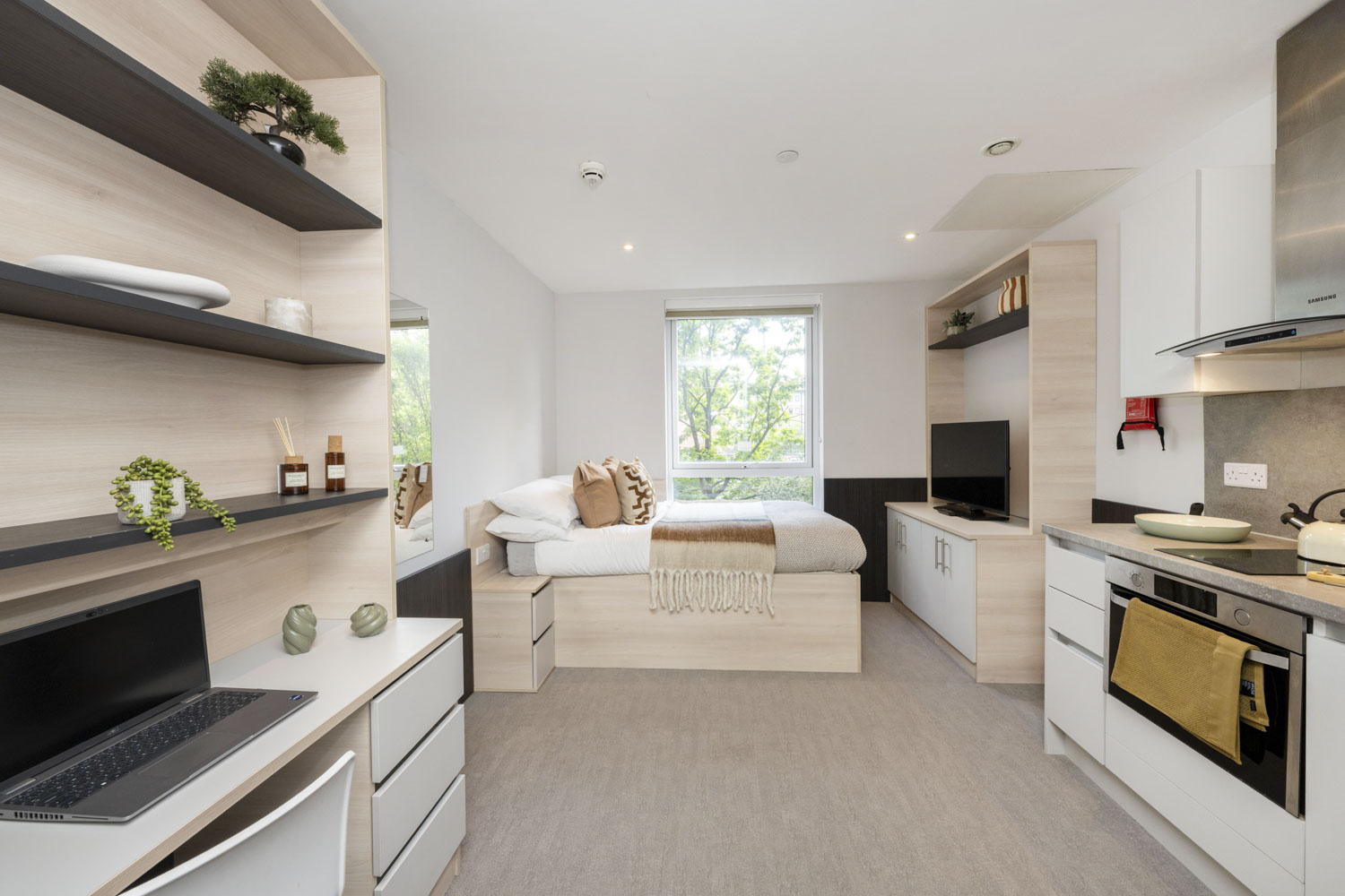 If you’re looking for somewhere to call your own, our studios offer complete privacy Our self contained studios are designed with a personal en-suite and fully fitted kitchenette With a range of sizes available, these flats will allow you to live in peace and focus on the important things in your life