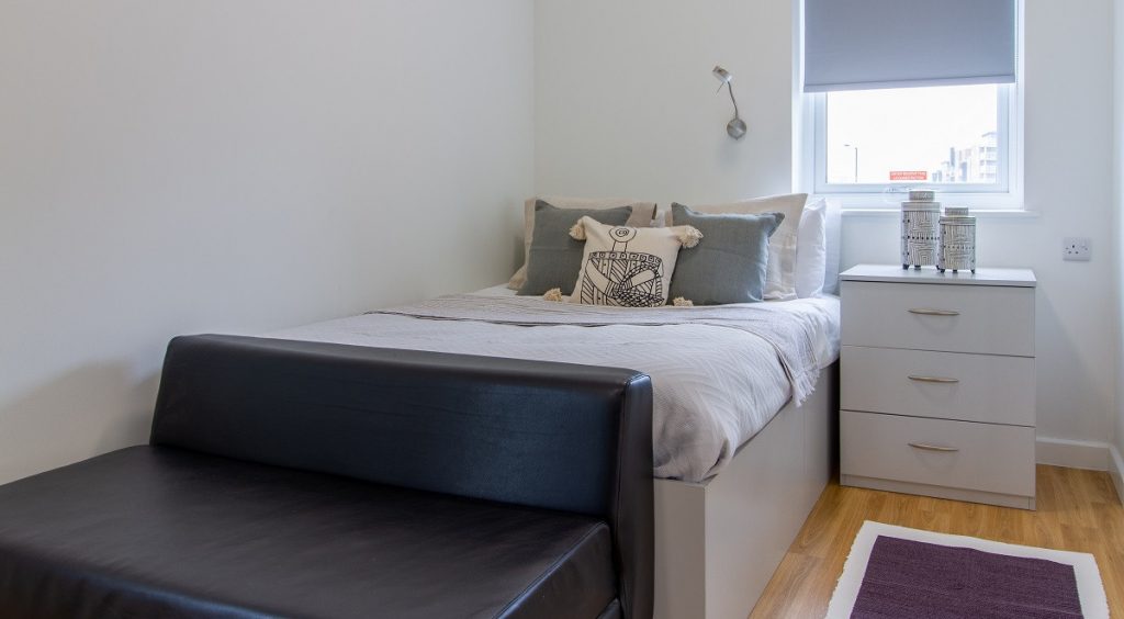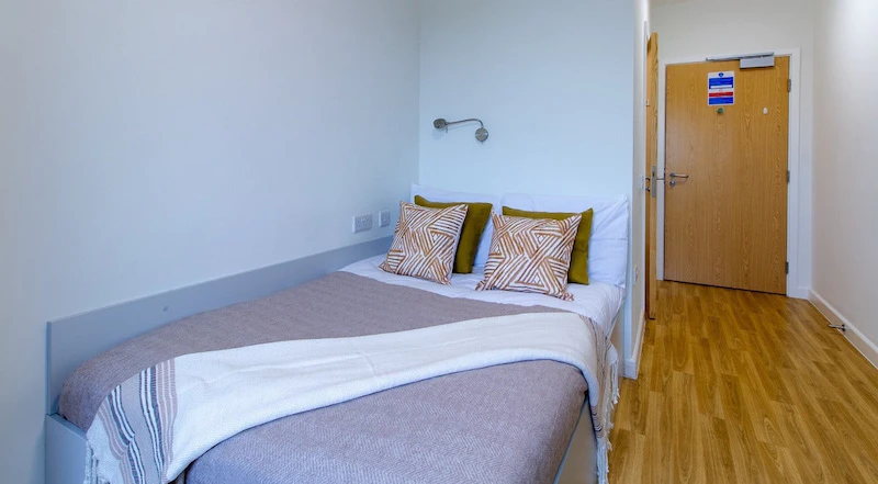 Self-contained studio with either a double bed or two single beds, kitchenette, en-suite bathroom, study area with two desks, two wardrobes and up to 100Mbps WIFI throughout. If there is a double occupancy within a room you need 2 guarantors and 2 deposit. There will also be £50 added to the weekly rent and divided by two. Room layout and size may vary. Please book a viewing which can be done via video call to view our show flat of a Bronze Ensuite..