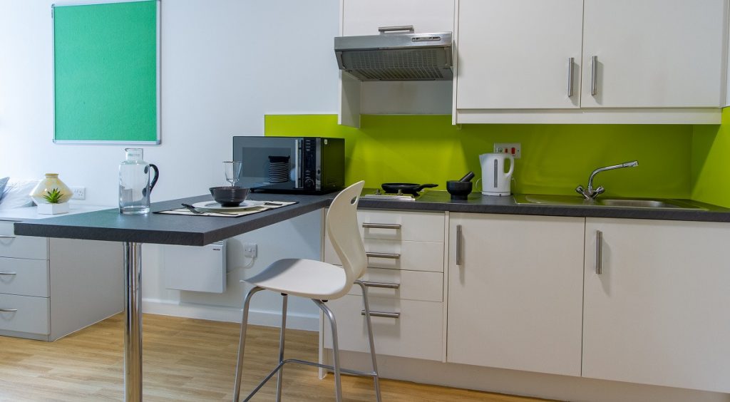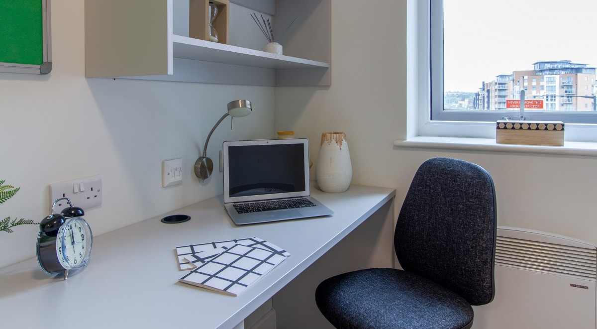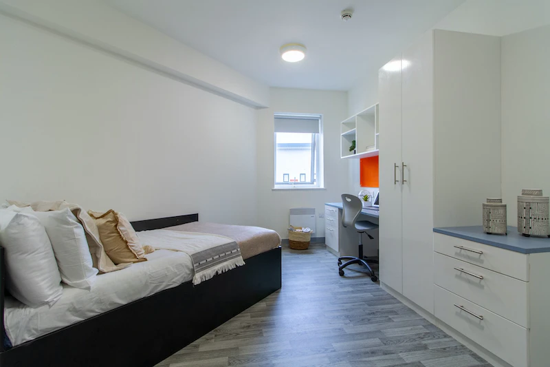 The Maltings accommodation offers a range of room options, including en-suite rooms and shared apartments, so students can choose the option that suits their preferences and budget. High-speed internet is available throughout the building, so students can easily stay connected with their studies and friends. It has study areas with desks, chairs, and power outlets, making it easy for students to focus on their studies. There are also multiple common areas in the building, including a common room with a TV and games, where students can socialize and relax. There are on-site laundry rooms with washing machines and dryers, so students can conveniently do their laundry without leaving the building. There is also a secure bike storage facility on-site, which is convenient for students who prefer to cycle to the university or around the town. The contemporary student studios provide a private bathroom and kitchenette and are completed to an exceptionally high standard. So after a busy day at the university, you can return home to a calm setting and freshen up in your private shower before making dinner.