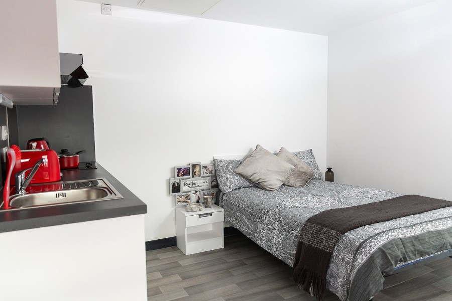 The property features a variety of room types, including cosy en-suite rooms and spacious studios. Each room includes a comfy ¾ double bed and access to a well-furnished kitchen. Students who flourish in a group must consider the Budget Ensuite, Classic Ensuite or Premium Ensuite. The en-suite rooms feature private bedrooms with attached bathrooms, with a room size of 12 m2. These rooms are connected to a shared living space and kitchen, which are shared among five roommates, thereby reducing living costs.