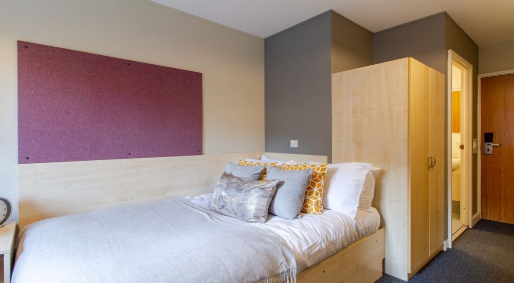This One Bed Flat comes with a double bed, study area, ensuite bathroom and fully fitted kitchenette. You will also have access to the communal areas, outdoor social space and study spaces.