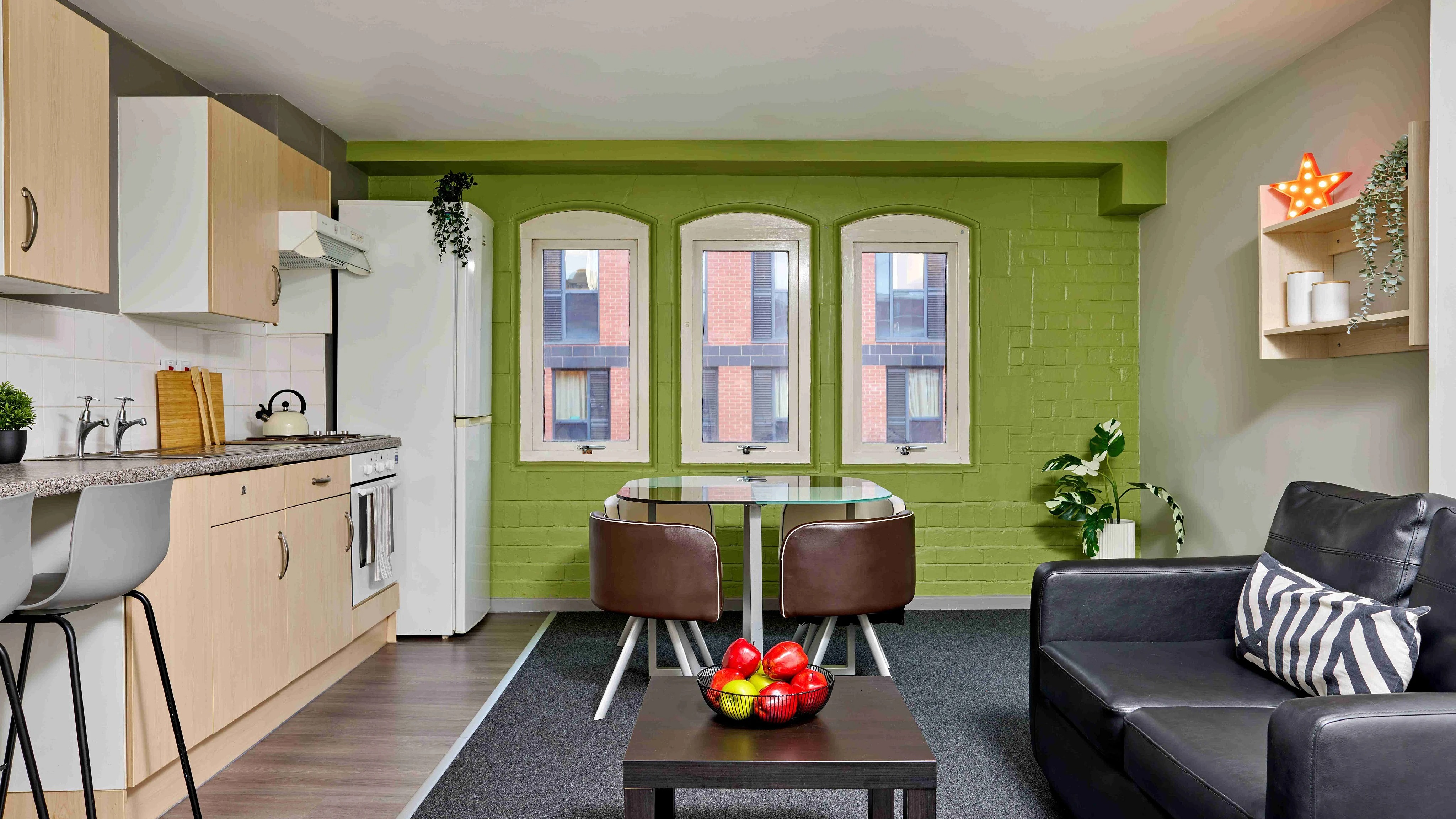 This Two Bed Flat comes with a double bed, study area, ensuite bathroom and fully fitted kitchenette. You will also have access to the communal areas, outdoor social space and study spaces.