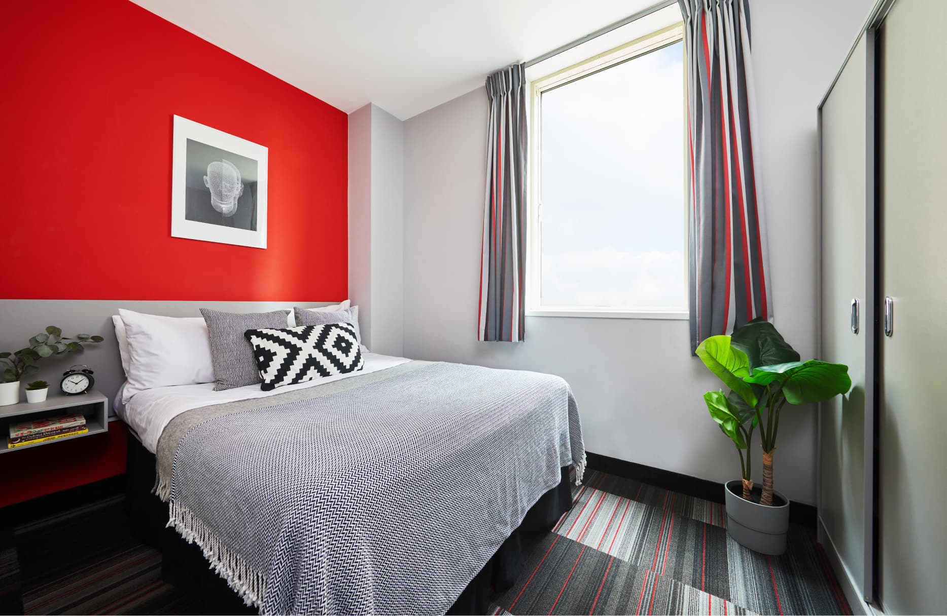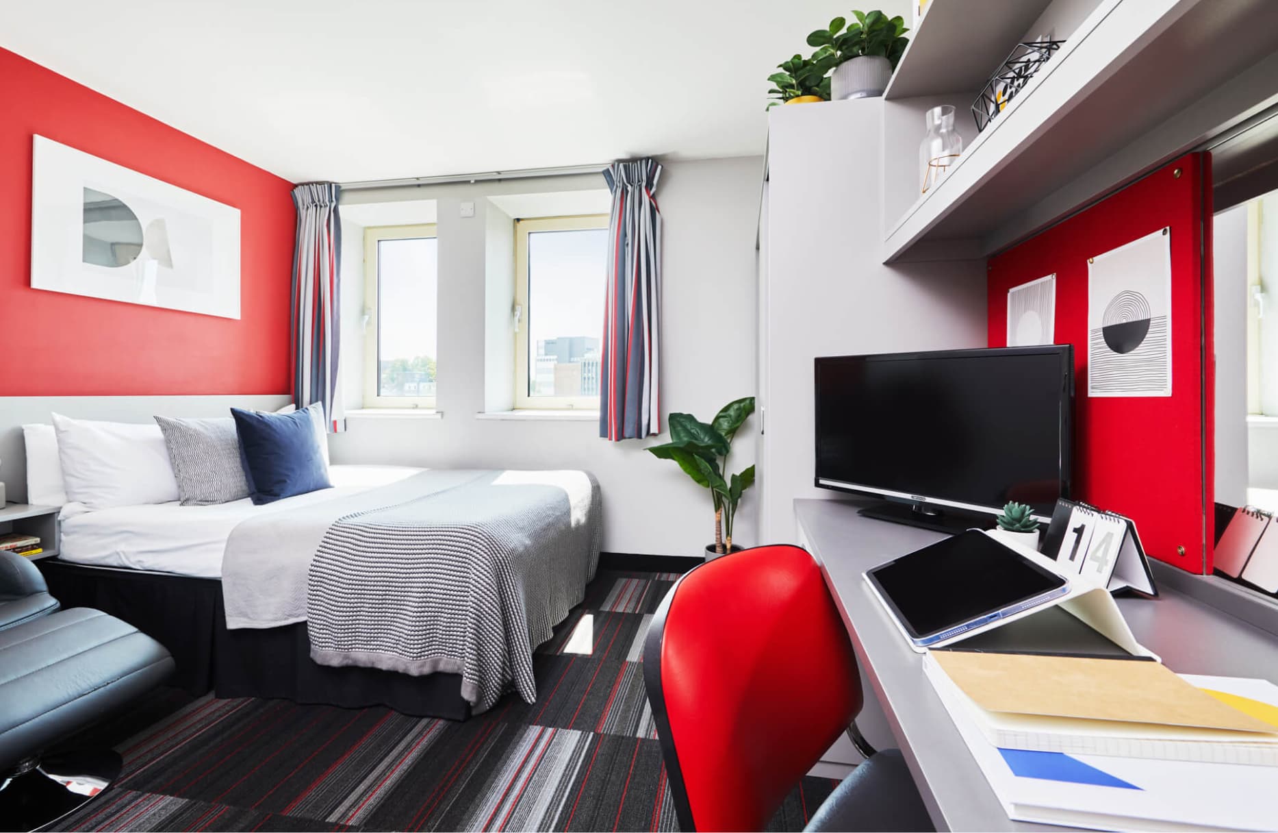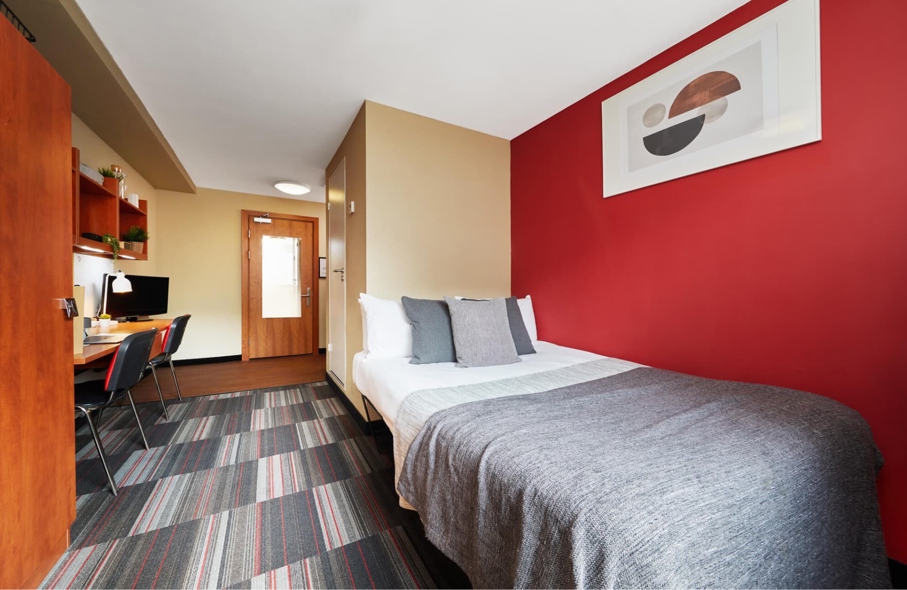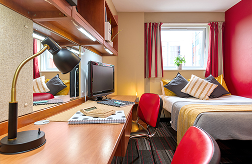 Slightly bigger studio apartment with double bed in Block A Double Bed En-suite shower room Fully equipped kitchenette Flat screen TV Study Desk and Chair Storage space Superfast Wi-Fi