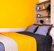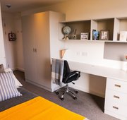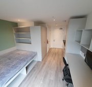 Experience great value in this Standard Ensuite room, measuring 12m², located in a shared flat designed for 8-9 students. These rooms are situated between the Ground and 3rd Floors. Each bedroom is furnished with a desk, chair, small double bed, mirror, french window, double wardrobe, and a spacious ensuite bathroom. The communal area is well-lit, featuring additional double French windows that create a welcoming and spacious atmosphere. The kitchen is fully equipped with premium appliances, including a fridge, freezer, two multifunctional ovens, two induction hobs, and two microwaves.