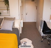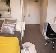 Our Standard Studios offer great value for money, located between the Ground and 6th floors. With a size up to 17m², each studio comes equipped with a TV, loads of storage space, and a kitchenette with an induction hob, fridge-freezer, and combination oven, perfect for independent living. The room also features a small double bed, French windows, and plenty of natural light, creating a bright and welcoming atmosphere. Ideal for those seeking privacy and convenience in a comfortable, well-equipped space.