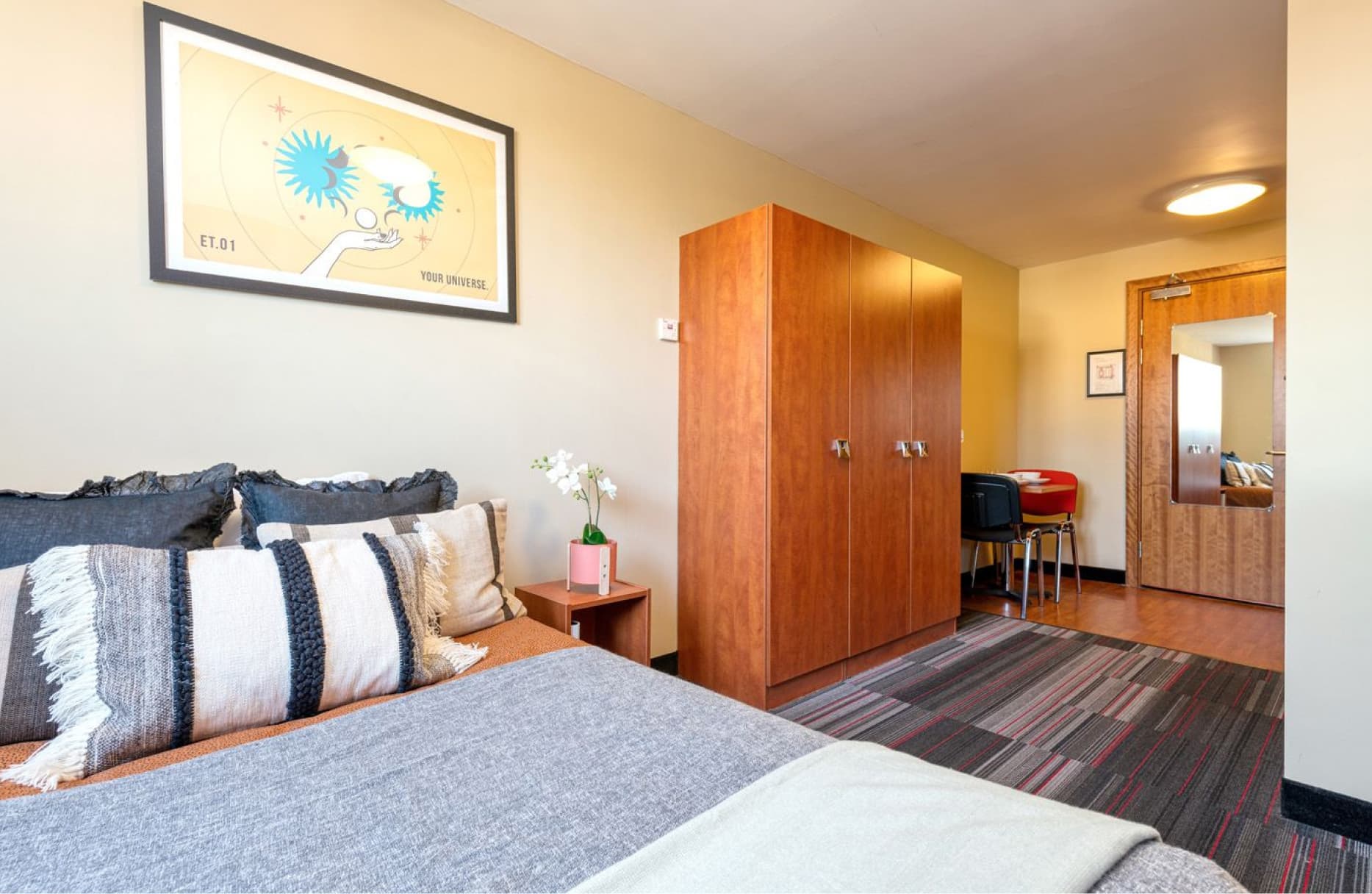 Slightly bigger studio apartment with double bed What's included Double Bed En-suite shower room Fully equipped kitchenette Flat screen TV Study Desk and Chair Storage space Superfast Wi-Fi