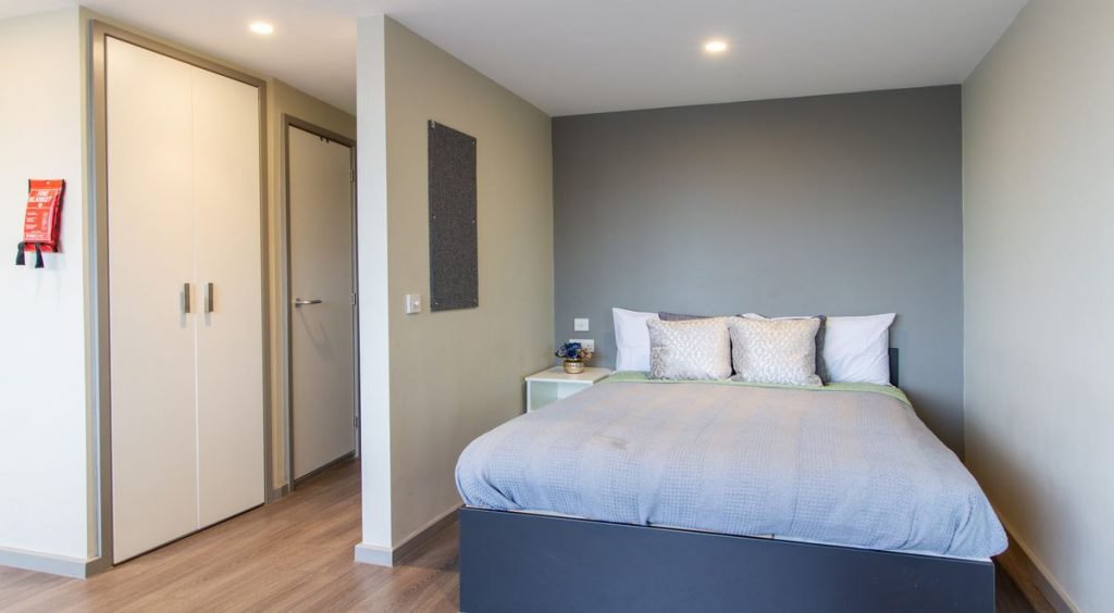 Now, if you are a person looking for separate and peaceful living spaces, the studio apartments guarantee your independence. These studio rooms include a private room with a double bed, a study area, a private bathroom, and a well-equipped kitchen for your vibrant culinary memories. The Silver Studio with Wet Room and the Gold Studio grant access to the entire space. Both the options at Millennium View Student Accommodation also provide wifi and laundry facilities.